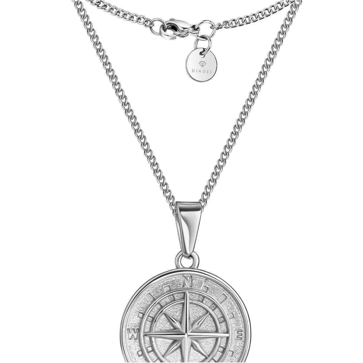 Lieferzeit: 2 - 3 TageDJADEE "Compass" KetteAUSGEZEICHNETE QUALITÄT: Keine Verfärbung, keine Hautreizung! Die Kette mit Anhänger sind aus hochwertigem Edelstahl, 18 Karat Weißgold vergoldet, mit einem edel-glänzenden Finish, sodass Du garantiert lange Zeit große Freude an diesem Schmuckstück hast. Qualität, die jeder an deinem Hals sofort erkennen wird. Das Schmuckstück wurde aufwendig mit 3 Goldschichten 18 Karat (750er) Weißgold vergoldet und garantiert daher eine luxuriöse Ausstrahlung. Dauerhafter Glanz, kein Abfärben durch die Vergoldung, rostfrei, nickelfrei, hochwertig verarbeitet, Farbe und Glanz wie echtes Weißgold.