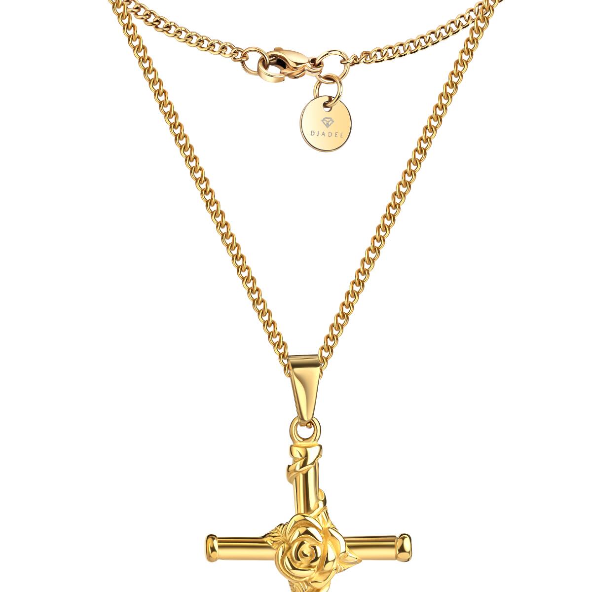 DJADEE "Flower Cross" KetteAUSGEZEICHNETE QUALITÄT: Keine Verfärbung, keine Hautreizung! Die Kette mit Anhänger sind aus hochwertigem Edelstahl, 18 Karat Gold vergoldet, mit einem edel-glänzenden Finish, sodass Du garantiert lange Zeit große Freude an diesem Schmuckstück hast. Qualität, die jeder an deinem Hals sofort erkennen wird. Das Schmuckstück wurde aufwendig mit 3 Goldschichten 18 Karat (750er) Gold vergoldet und garantiert daher eine luxuriöse Ausstrahlung. Dauerhafter Glanz, kein Abfärben durch die Vergoldung, rostfrei, nickelfrei, hochwertig verarbeitet, Farbe und Glanz wie echtes Gold.