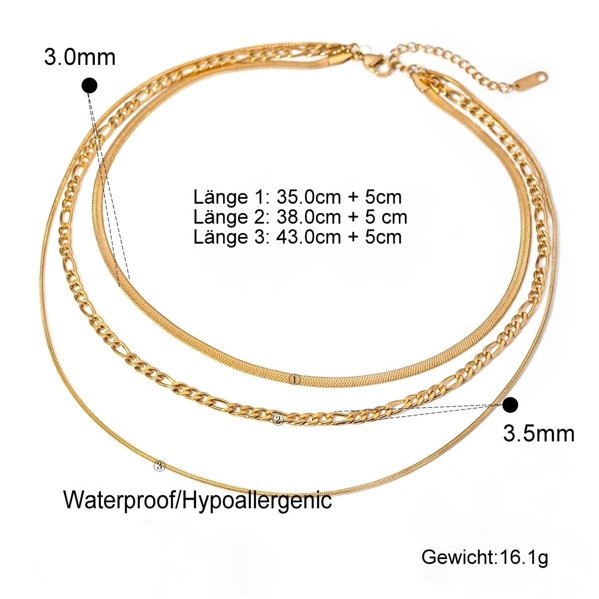 Free Waves KetteDie DJADEE Damen Free Waves Kette aus Edelstahl 316L ist ein elegantes und zeitloses Schmuckstück. Die Kette ist mit 750er Gold 18 Karat vergoldet und somit wasserfest und hypoallergen. Das Design der Vierer-Kette mit Zirkonia-Anhänger ist von den Wellen des Meeres inspiriert. Mit einer verstellbaren Länge lässt sich die Kette perfekt an Ihren individuellen Stil anpassen. Ob als Geschenk für eine geliebte Frau oder Mädchen oder als Ergänzung Ihrer eigenen Schmuckkollektion - diese Kette ist ein Blickfang, der Ihnen viele Komplimente einbringen wird.AUSGEZEICHNETE QUALITÄT: Keine Verfärbung, keine Hautreizung! Die Kette besteht aus hochwertigem Edelstahl 316L, 18 Karat Gold vergoldet, mit einem edel-glänzenden Finish, sodass Du garantiert lange Zeit große Freude an diesem Schmuckstück hast. Qualität, die jeder sofort erkennen wird. Die Kette wurde aufwendig mit 3 Goldschichten vergoldet und garantiert daher eine luxuriöse Ausstrahlung, dauerhaften Glanz, kein Abfärben, rostfrei, nickelfrei, hochwertig verarbeitet, Farbe und Glanz wie echtes Gold.WIDERSTANDSFÄHIG: Durch die hochwertige Vergoldung, erhält unser Schmuck einen extra starken Schutz und behält seine Farbe selbst im Salzwasser oder unter der Dusche. Die Beschichtung ist besonders haltbar und kann lange Zeit halten. Zusätzlich werden alle Schmuckstücke mit einer Anlaufschutzschicht für langanhaltenden Glanz veredelt.