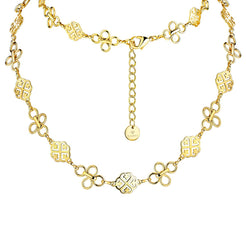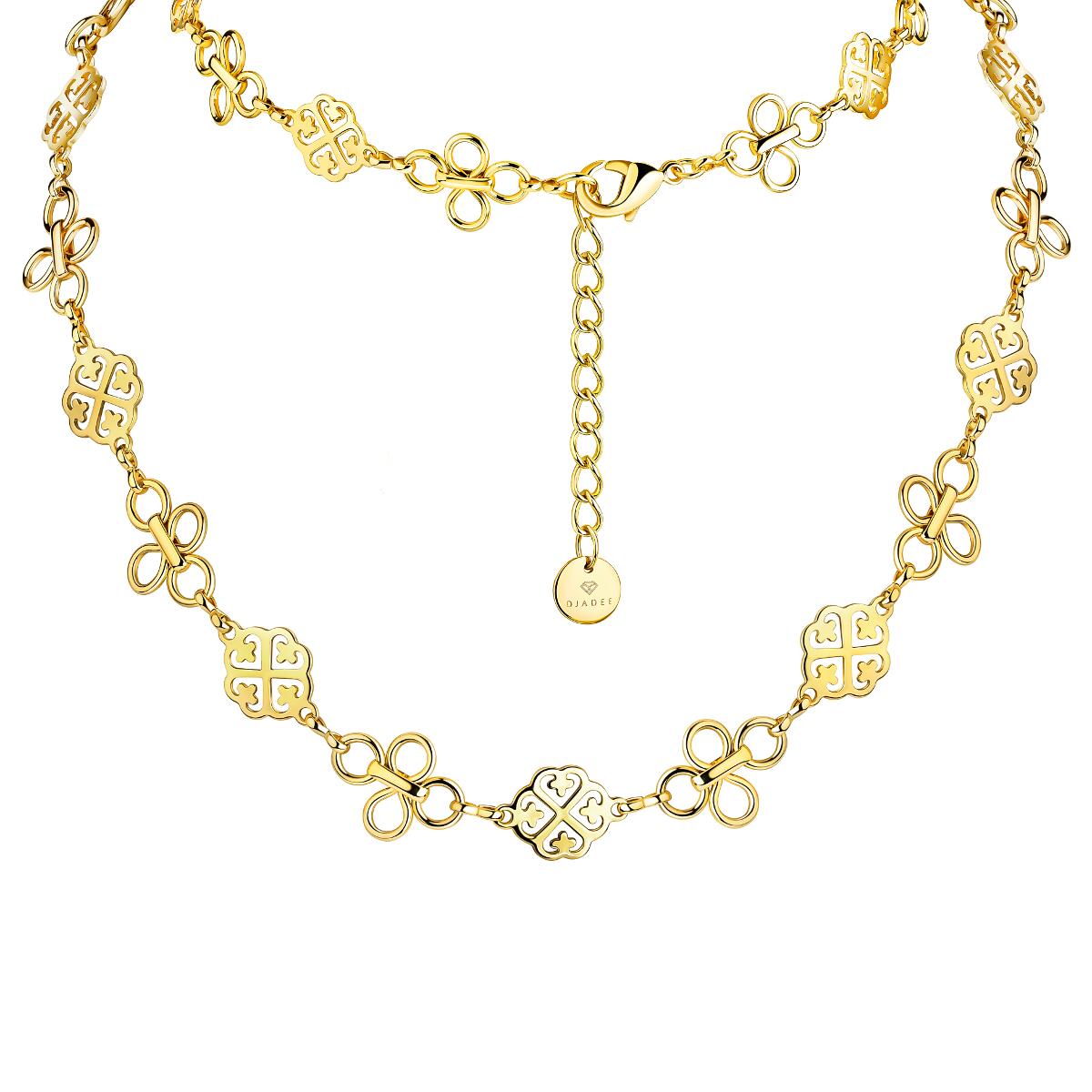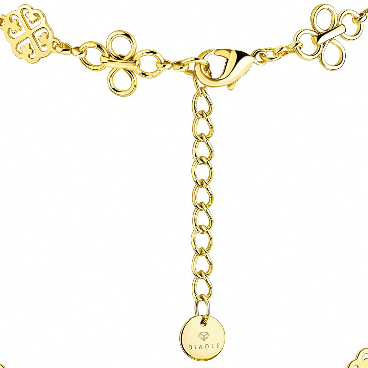 Lieferzeit: 2 - 3 TageDJADEE "Gleamy Flowers" KetteAUSGEZEICHNETE QUALITÄT: Keine Verfärbung, keine Hautreizung! Die Kette ist aus hochwertigem Messing, 24 Karat Gold vergoldet, mit einem edel-glänzenden Finish, sodass Du garantiert lange Zeit große Freude an diesem Schmuckstück hast. Qualität, die jeder an deinem Hals sofort erkennen wird. Die Kette wurde aufwendig mit 3 Goldschichten 24 Karat (999er) Gold vergoldet und garantiert daher eine luxuriöse Ausstrahlung. Dauerhafter Glanz, kein Abfärben durch die Vergoldung, rostfrei, nickelfrei, hochwertig verarbeitet, Farbe und Glanz wie echtes Gold.WIDERSTANDSFÄHIG – Durch die hochwertige Vergoldung, erhält unser Schmuck einen extra starken Schutz und behält seine Farbe selbst im Salzwasser oder unter der Dusche. Die Beschichtung ist besonders haltbar und kann langlebig halten. Zusätzlich werden alle Schmuckstücke mit einer Anlaufschutzschicht für langanhaltenden Glanz veredelt.