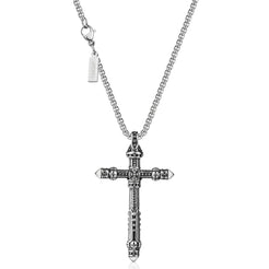 Die perfekte Kombination aus Venezianerkette und Kreuz Anhänger! Im trendstarken Design präsentiert sich dieses luxuriöse Kreuz in Vintage Design. Hochfertiger Anhänger besteht aus massivem Edelstahl 316L und wurde mit einer 10 Mikron dicken Schicht aus 18 Karätigem Weißgold beschichtet, teils geschwärzt, aufwändig gestaltetes Kreuz, verziert mit kleinen Totenköpfen und Ornamenten.