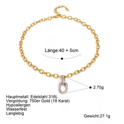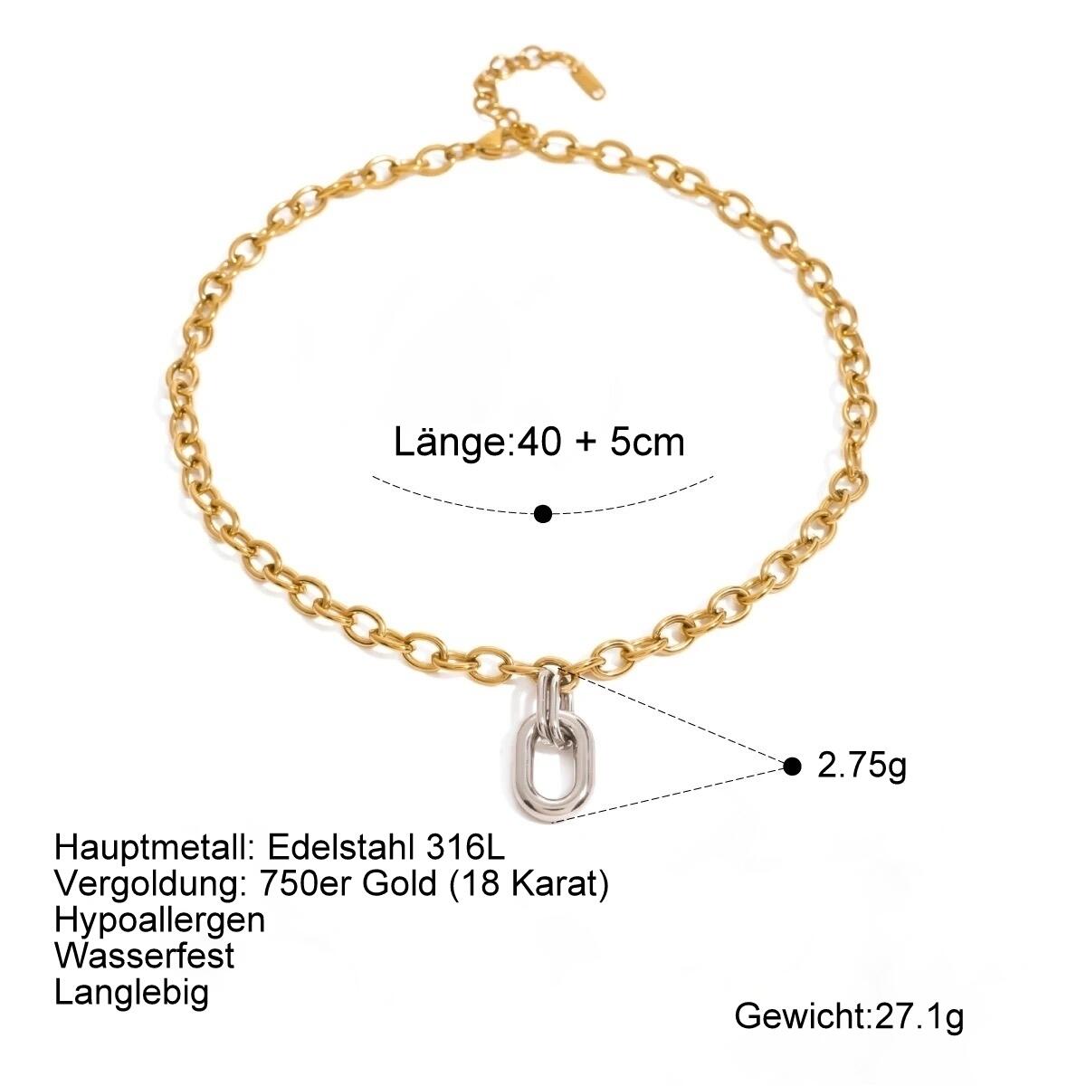 Huggie KetteDiese elegante Halskette von DJADEE ist aus hochwertigem 316L Edelstahl gefertigt und mit 750er Gold 18 Karat vergoldet. Die bicolor Optik verleiht ihr einen modernen und trendigen Look. Mit einer Länge von 40 cm und einer 5 cm Verlängerungskette lässt sie sich perfekt an jede Figur anpassen. Die Oberfläche ist hochglanzpoliert und anlaufgeschützt für einen langanhaltenden Glanz. Dank der hypoallergenen und nickelfrei Verarbeitung ist die Kette wasserfest und ideal für alle, die auf Allergien achten müssen. Ein wunderschönes Geschenk für die Frau oder das Mädchen in Ihrem Leben, das in dieser Saison im Trend liegt.AUSGEZEICHNETE QUALITÄT: Keine Verfärbung, keine Hautreizung! Die Kette besteht aus hochwertigem Edelstahl 316L, 18 Karat Gold vergoldet, mit einem edel-glänzenden Finish, sodass Du garantiert lange Zeit große Freude an diesem Schmuckstück hast. Qualität, die jeder sofort erkennen wird. Die Kette wurde aufwendig mit 3 Goldschichten vergoldet und garantiert daher eine luxuriöse Ausstrahlung, dauerhaften Glanz, kein Abfärben, rostfrei, nickelfrei, hochwertig verarbeitet, Farbe und Glanz wie echtes Gold.WIDERSTANDSFÄHIG: Durch die hochwertige Vergoldung, erhält unser Schmuck einen extra starken Schutz und behält seine Farbe selbst im Salzwasser oder unter der Dusche. Die Beschichtung ist besonders haltbar und kann lange Zeit halten. Zusätzlich werden alle Schmuckstücke mit einer Anlaufschutzschicht für langanhaltenden Glanz veredelt.