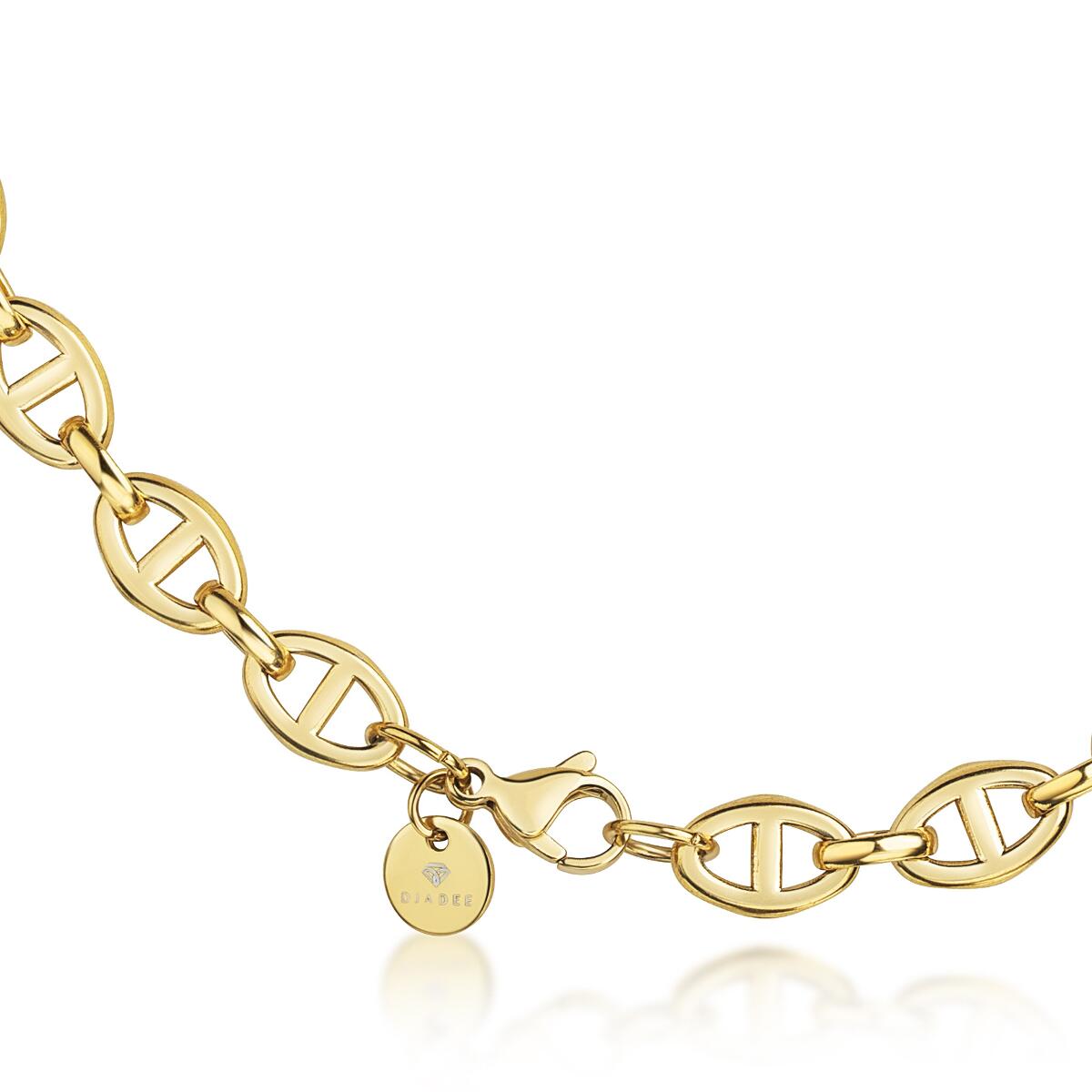 DJADEE "Imperial" KetteAUSGEZEICHNETE QUALITÄT: Keine Verfärbung, keine Hautreizung! Die Kette ist aus hochwertigem Edelstahl, 18 Karat Gold vergoldet, mit einem edel-glänzenden Finish, sodass Du garantiert lange Zeit große Freude an diesem Schmuckstück hast. Qualität, die jeder an deinem Hals sofort erkennen wird. Die Kette wurde aufwendig mit 3 Goldschichten 18 Karat (750er) Gold vergoldet und garantiert daher eine lüxuriöse Ausstrahlung. Dauerhafter Glanz, kein Abfärben durch die Vergoldung, rostfrei, nickelfrei, hochwertig verarbeitet, Farbe und Glanz wie echtes Gold.
