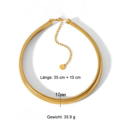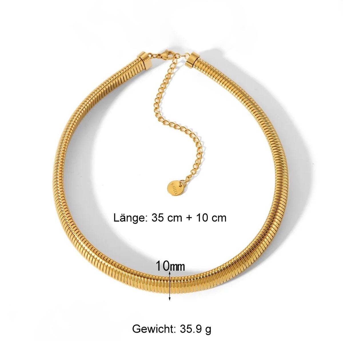 Lieferzeit: 2- 3 TageOcean Rope KetteDie DJADEE Ocean Rope Kette ist eine einzigartige Halskette, die von den Schätzen des Meeres inspiriert wurde. Sie besteht aus hochwertigem Edelstahl 316L, 18-karätigem 750er Gold und ist mit drei Goldschichten (10 Micron) sowie einer Anlaufschutzschicht versehen. Die Kette ist wasserfest, hypoallergen und elastisch, was sie besonders bequem und langlebig macht. Der Karabinerverschluss ermöglicht ein einfaches An- und Ausziehen. Mit einer Länge von 35 cm und einer 10 cm langen Verlängerungskette ist sie vielseitig tragbar. Die Oberfläche ist hochglanzpoliert und anlaufgeschützt für einen luxuriösen Look. Die Breite von 10, 16 mm verleiht der Kette eine elegante Präsenz. Erhältlich in den Farben Gold und Silber, ist sie ein hochwertiges und qualitativ hochwertiges Accessoire. Ob als Geschenk für eine Frau oder ein Mädchen oder als Selbstbelohnung, diese Kette ist ein wahrer Blickfang.AUSGEZEICHNETE QUALITÄT: Keine Verfärbung, keine Hautreizung! Die Kette ist aus hochwertigem Edelstahl, 18 Karat Gold vergoldet, mit einem edel-glänzenden Finish, sodass Du garantiert lange Zeit große Freude an diesem Schmuckstück hast. Qualität, die jeder an deinem Hals sofort erkennen wird. Die Kette wurde aufwendig mit 3 Goldschichten 18 Karat (750er) Gold vergoldet und garantiert daher eine luxuriöse Ausstrahlung. Dauerhafter Glanz, kein Abfärben durch die Vergoldung, rostfrei, nickelfrei, hochwertig verarbeitet, Farbe und Glanz wie echtes Gold.WIDERSTANDSFÄHIG: Durch die hochwertige Vergoldung, erhält unser Schmuck einen extra starken Schutz und behält seine Farbe selbst im Salzwasser oder unter der Dusche. Die Beschichtung ist besonders haltbar und kann lange Zeit halten. Zusätzlich werden alle Schmuckstücke mit einer Anlaufschutzschicht für langanhaltenden Glanz veredelt.