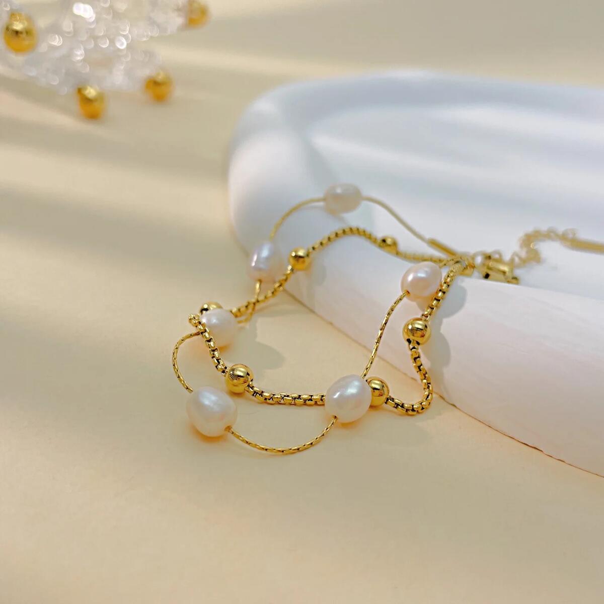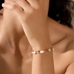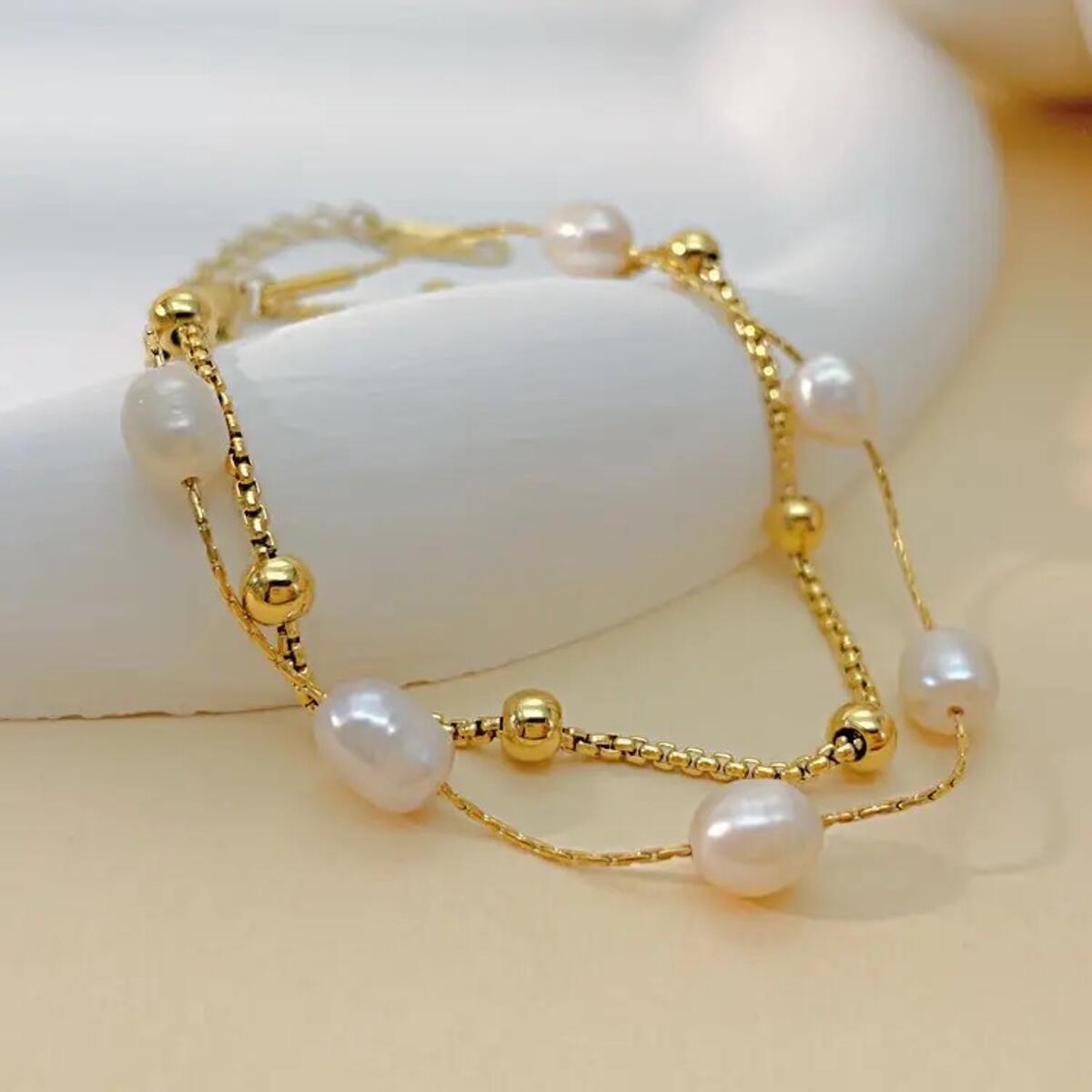 Dieses elegante Damenarmband von DJADEE ist ein Meisterstück aus 750er Gold und 18 Karat vergoldetem Edelstahl. Es besticht durch sechs wunderschöne weiße Süßwasserperlen, die von sieben goldenen Perlen umrahmt werden. Das Armband ist wasserfest, hypoallergen und nickelfrei, sodass es bequem den ganzen Tag getragen werden kann. Mit seiner hochglanzpolierten Oberfläche und anlaufgeschützten Beschichtung behält es lange seinen strahlenden Glanz. Die Länge von 17 cm lässt sich dank der 5 cm Verlängerungskette individuell anpassen. Dieses langlebige Schmuckstück ist ein perfektes Geschenk für eine Frau oder ein Mädchen, das Wert auf Eleganz und Qualität legt.