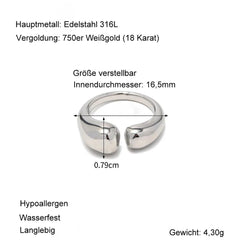 Lieferzeit: 2- 3 TageSea Huggie RingDer DJADEE Damen Sea Huggie Ring ist in zwei Farben erhältlich: Gold und Silber. Er besteht aus 750er vergoldetem 18 Karat Edelstahl 316 L und ist wasserfest, hypoallergen und nickelfrei. Inspiriert von der Umarmung des Meeres und der Naturliebe, besticht dieser Ring durch seine hochglanzpolierte, anlaufgeschützte Premiumqualität. Ob beim Sport, Duschen oder Schwimmen, der Schmuck verliert seine Farbe nicht und bleibt langlebig. Der offene Damenring ist in der Größe verstellbar und eignet sich perfekt als Geschenk für Frauen und Mädchen.AUSGEZEICHNETE QUALITÄT: Keine Verfärbung, keine Hautreizung! Der Ring ist aus hochwertigem Edelstahl 316L, 18 Karat Gold vergoldet, mit einem edel-glänzenden Finish, sodass Du garantiert lange Zeit große Freude an diesem Schmuckstück hast. Qualität, die jeder an deiner Hand sofort erkennen wird. Der Ring wurde aufwendig mit 3 Goldschichten vergoldet und garantiert daher eine luxuriöse Ausstrahlung, dauerhaften Glanz, kein Abfärben, rostfrei, nickelfrei, hochwertig verarbeitet, Farbe und Glanz wie echtes Gold.WIDERSTANDSFÄHIG – Durch die hochwertige Vergoldung, erhält unser Schmuck einen extra starken Schutz und behält seine Farbe selbst im Salzwasser oder unter der Dusche. Die Beschichtung ist besonders haltbar und kann langlebig halten. Zusätzlich werden unsere Schmuckstücke mit einer Anlaufschutzschicht für langanhaltenden Glanz veredelt.