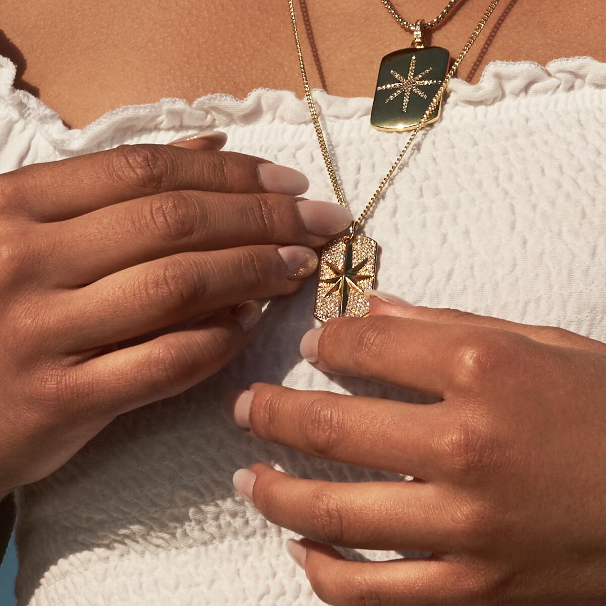 DJADEE "SHININGSTAR" KETTE MIT ANHÄNGERDiese North Star Halskette wird eine mächtige Energie zu Ihrem Aussehen bringen! Es ist in der Form von Starburst Pendant gefertigt und gegeben ein glamouröses Finish mit einer Sammlung von glitzernden Zirkonia. Der Nordstern ist der Anker des nördlichen Himmels, der denjenigen hilft, die Richtung zu bestimmen, während er hell leuchtet, um zu einem zielgerichteten Ziel zu führen und zu führen. Der Zirkonia steht aufgrund seiner weißen Farbe und seinen Brillantschliff für Reinheit und ist aufgrund seiner Ähnlichkeit zum Diamanten sehr beliebt.
