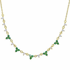Lieferzeit: 2 - 3 TageDJADEE "SMARAGD" KETTEDie luxuriöse DJADEE "Smaragd" Kette aus der Beauty of Emerald Kollektion mit einzigartigen funkelnden Zirkonia Steinen in grün und in weiß verleiht deinem Look Eleganz, ein zartes Aussehen und Charm einer Königin. Durch Zirkoniasteine wird diese Kette zum absoluten Hingucker bei jeder Gelegenheit. In Kombination mit anderen Ketten deiner Wahl sieht diese Smaragdkette umwerfend aus! Passend zu dieser Kette gibt es ein Ring und Ohrringe als perfekte Ergänzung.ZIRKONIA FUNKELN FAST SO SCHÖN WIE ECHTE BRILLANTEN - Zirkonia gelten als die perfekten Brillantkopien. Selbst Fachleuten fällt es auf den ersten Blick schwer, den künstlichen Stein von einem Brillanten zu unterscheiden.