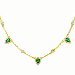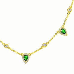 Die luxuriöse DJADEE "Smaragd" Kette aus der Beauty of Emerald Kollektion mit einzigartigen funkelnden Zirkonia Steinen in grün und in weiß verleiht deinem Look Eleganz, ein zartes Aussehen und Charm einer Königin. Durch Zirkoniasteine wird diese Kette zum absoluten Hingucker bei jeder Gelegenheit. In Kombination mit anderen Ketten deiner Wahl sieht diese Smaragdkette umwerfend aus! Passend zu dieser Kette gibt es ein Ring und Ohrringe als perfekte Ergänzung.