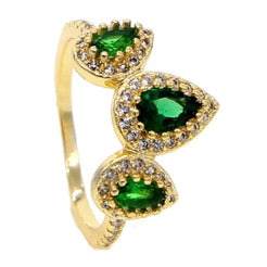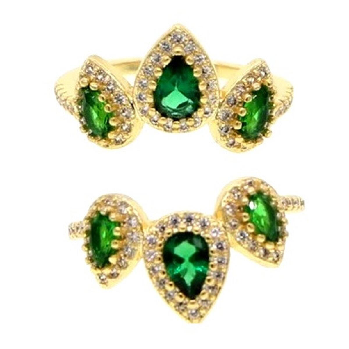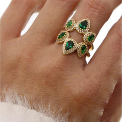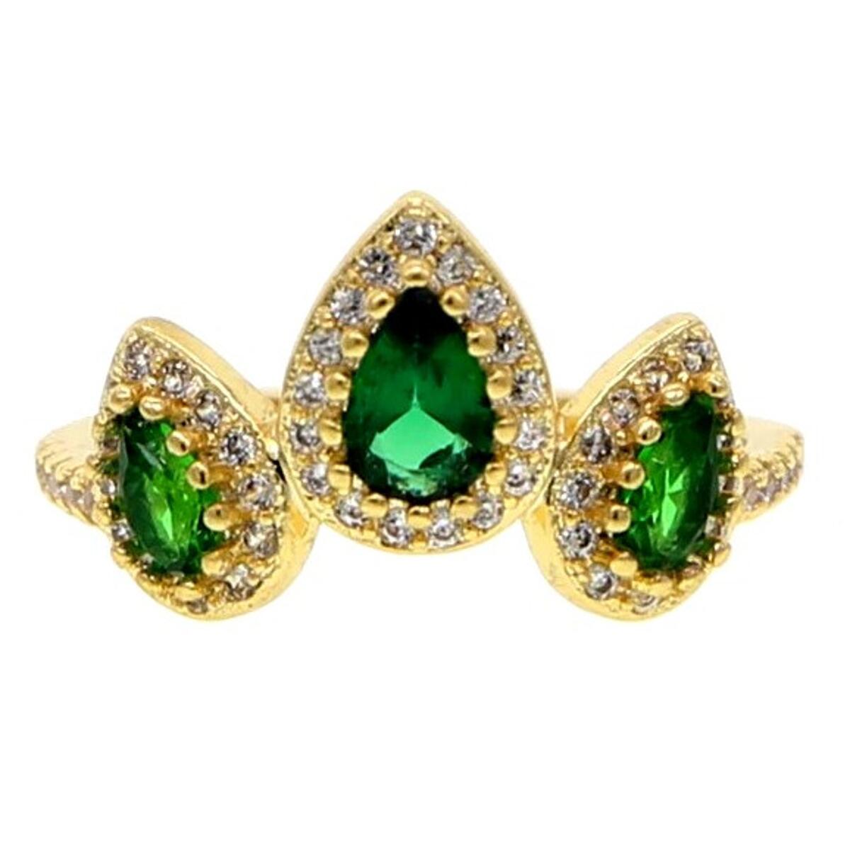 Der luxuriöse DJADEE "Smaragd" Ring aus der Beauty of Emerald Kollektion mit drei einzigartigen funkelnden Zirkonia Steinen in grün verleiht deinem Look Eleganz und Charm einer Königin. Ein Strahlenkranz aus kleinen weißen Zirkonia Steinen umrahmt die drei große grüne Steine und verleiht dem Ring ein zartes Aussehen. In Kombination mit anderen Ringen deiner Wahl sieht dieser Ring umwerfend aus und bringt deine Finger zum Glänzen! Passend zu diesem Ring gibt es eine Halskette und Ohrringe als perfekte Ergänzung.