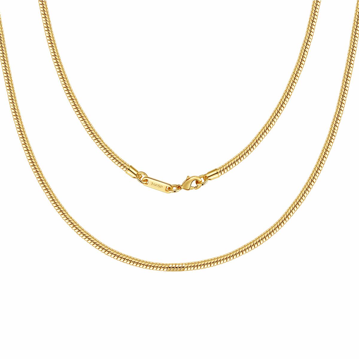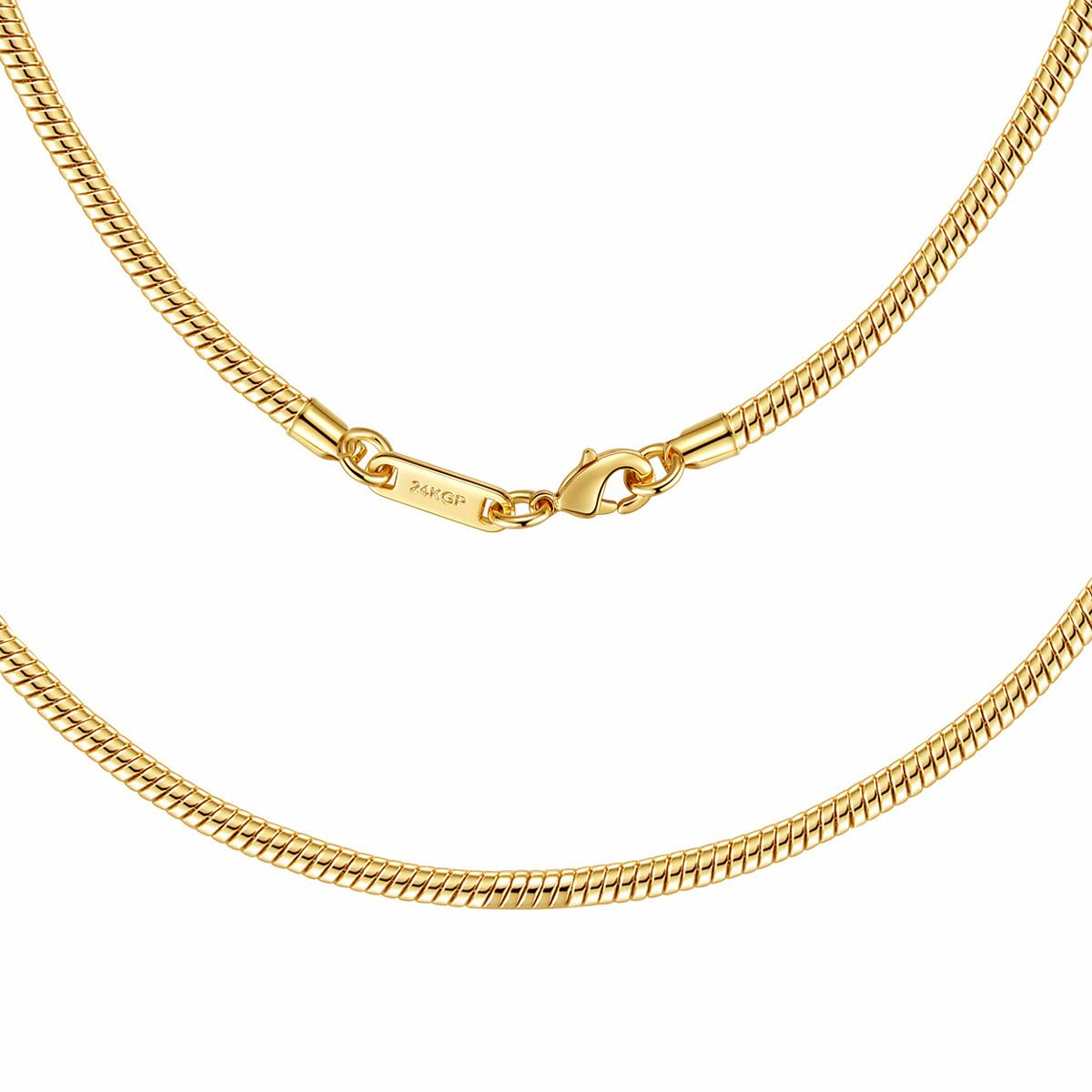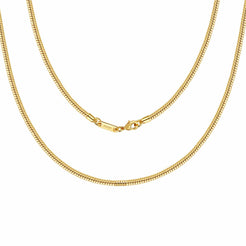 Zeitlos, klassisch und elegant! Durch das Hochglanz-Finish wird dieses Accessoire garantiert zu Ihrem Lieblingsschmuckstück. Diese Schlangenkette zeichnet sich nicht nur durch sein gelungenes Design und eignet sich hervorragend solo getragen oder in Kombination mit Anhängern oder anderen Ketten. Ganz unkompliziert verfeinert das Schmuckstück jedes Outfit und setzt dabei gekonnt Akzente im Dekolleté.Qualität - Die Kette ist mit 24 Karat (999er Gold) vergoldet und garantiert daher eine luxuriöse Ausstrahlung. Dauerhafter Glanz, kein Abfärben durch die Vergoldung, rostfrei, nickelfrei, hochwertig verarbeitet, Farbe und Glanz wie echtes Gold. Durch die hochwertige Vergoldung, erhält unser Schmuck einen extra starken Schutz und behält seine Farbe selbst im Salzwasser oder unter der Dusche.