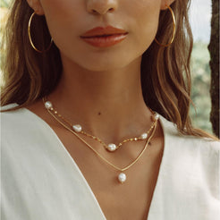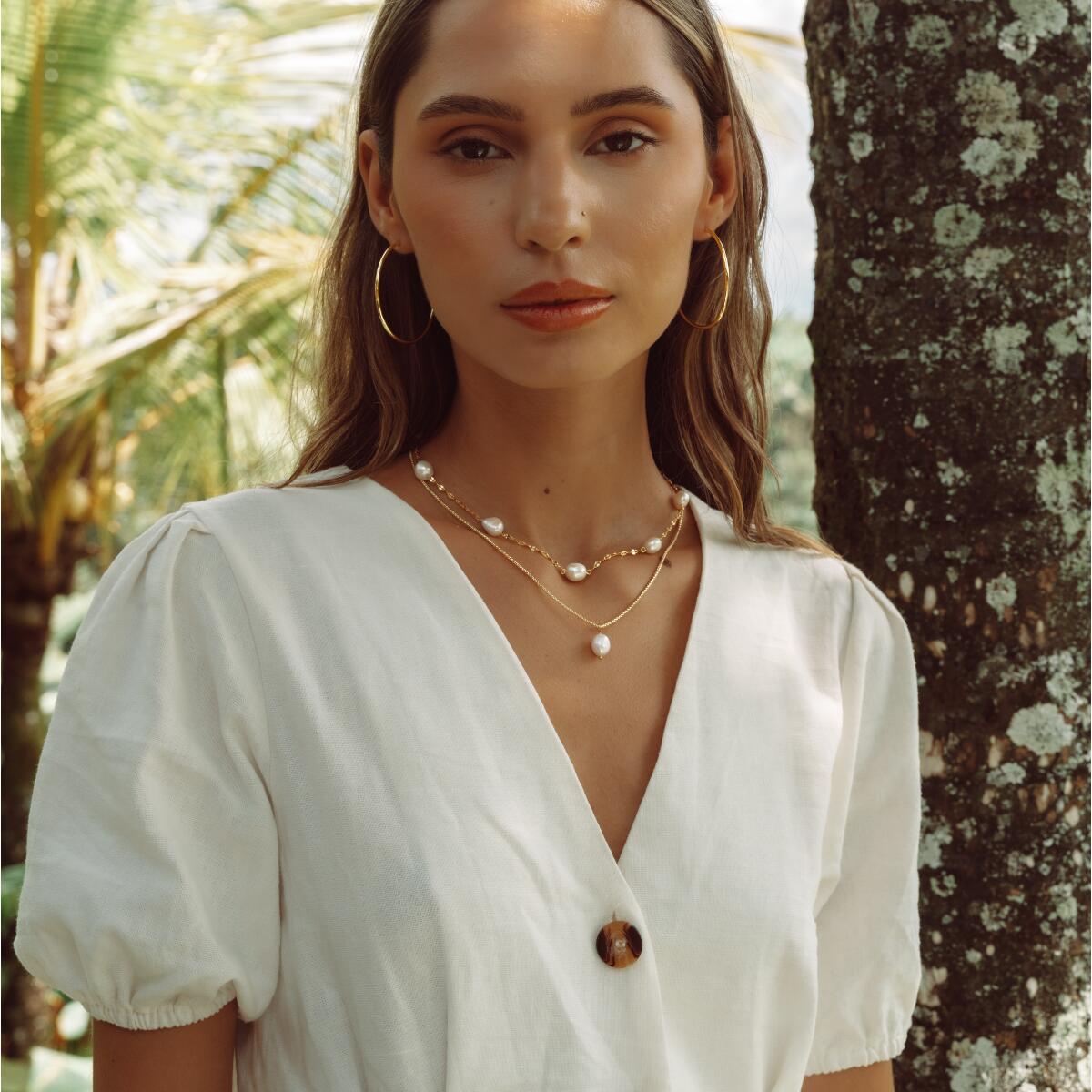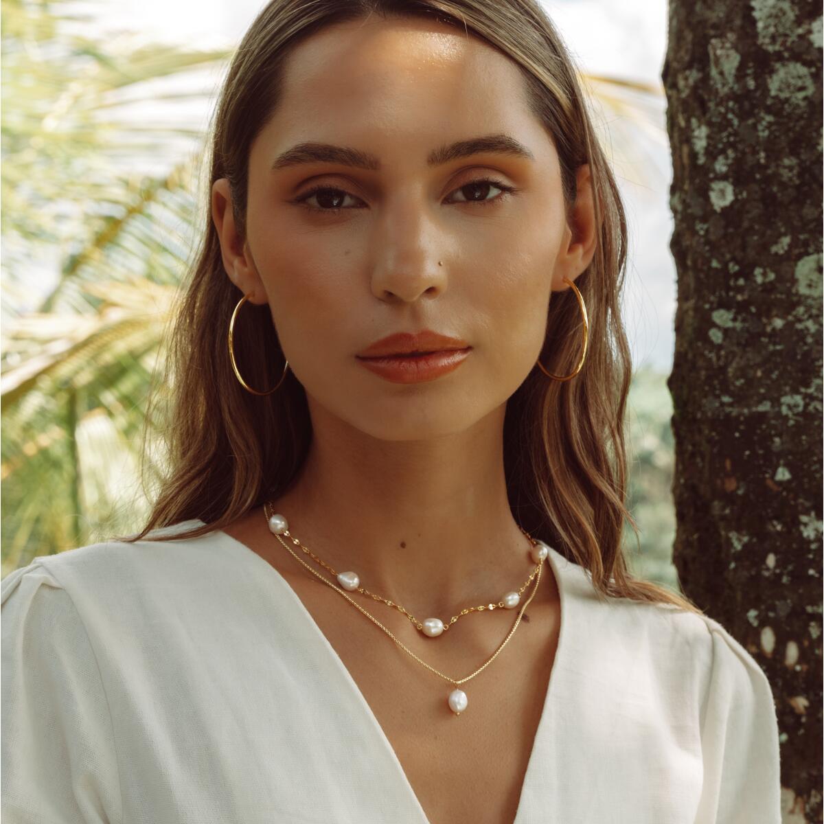 Adora Pearl Kette aus der Ocean Stories KollektionAUSGEZEICHNETE QUALITÄT: Keine Verfärbung, keine Hautreizung! Die Kette ist aus hochwertigem Messing, 24 Karat Gold vergoldet, mit einem edel-glänzenden Finish, sodass Du garantiert lange Zeit große Freude an diesem Schmuckstück hast. Qualität, die jeder an deinem Hals sofort erkennen wird. Die Kette wurde aufwendig mit 3 Goldschichten 24 Karat (999er) Gold vergoldet und garantiert daher eine luxuriöse Ausstrahlung. Dauerhafter Glanz, kein Abfärben durch die Vergoldung, rostfrei, nickelfrei, hochwertig verarbeitet, Farbe und Glanz wie echtes Gold.WIDERSTANDSFÄHIG: Durch die hochwertige Vergoldung, erhält unser Schmuck einen extra starken Schutz und behält seine Farbe selbst im Salzwasser oder unter der Dusche. Die Beschichtung ist besonders haltbar und kann lange Zeit halten. Zusätzlich werden alle Schmuckstücke mit einer Anlaufschutzschicht für langanhaltenden Glanz veredelt.