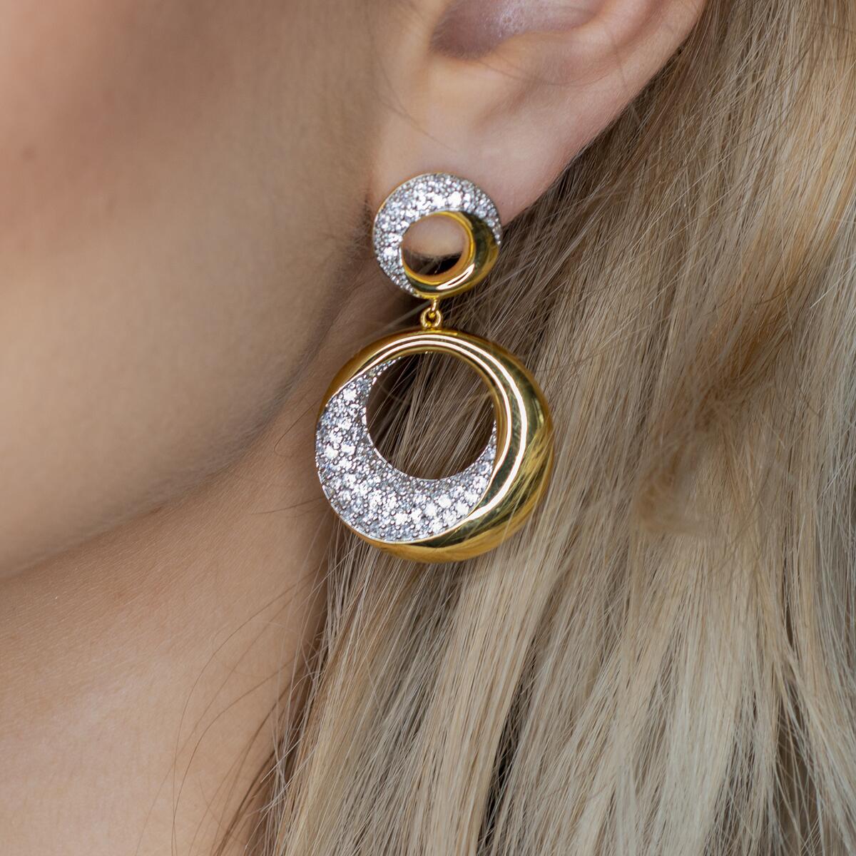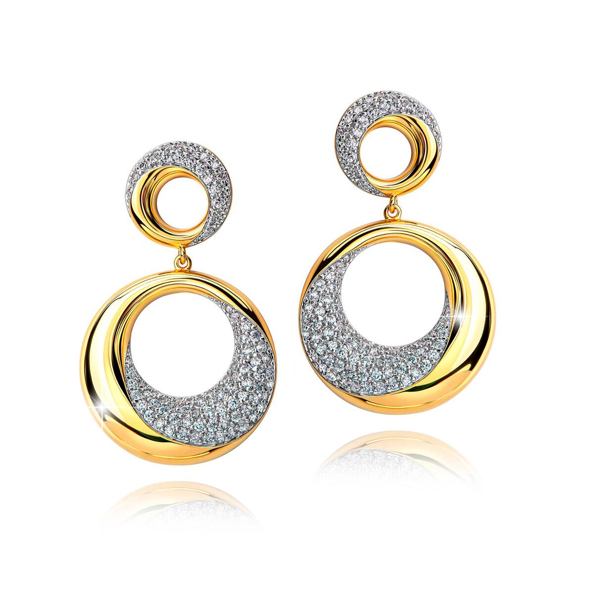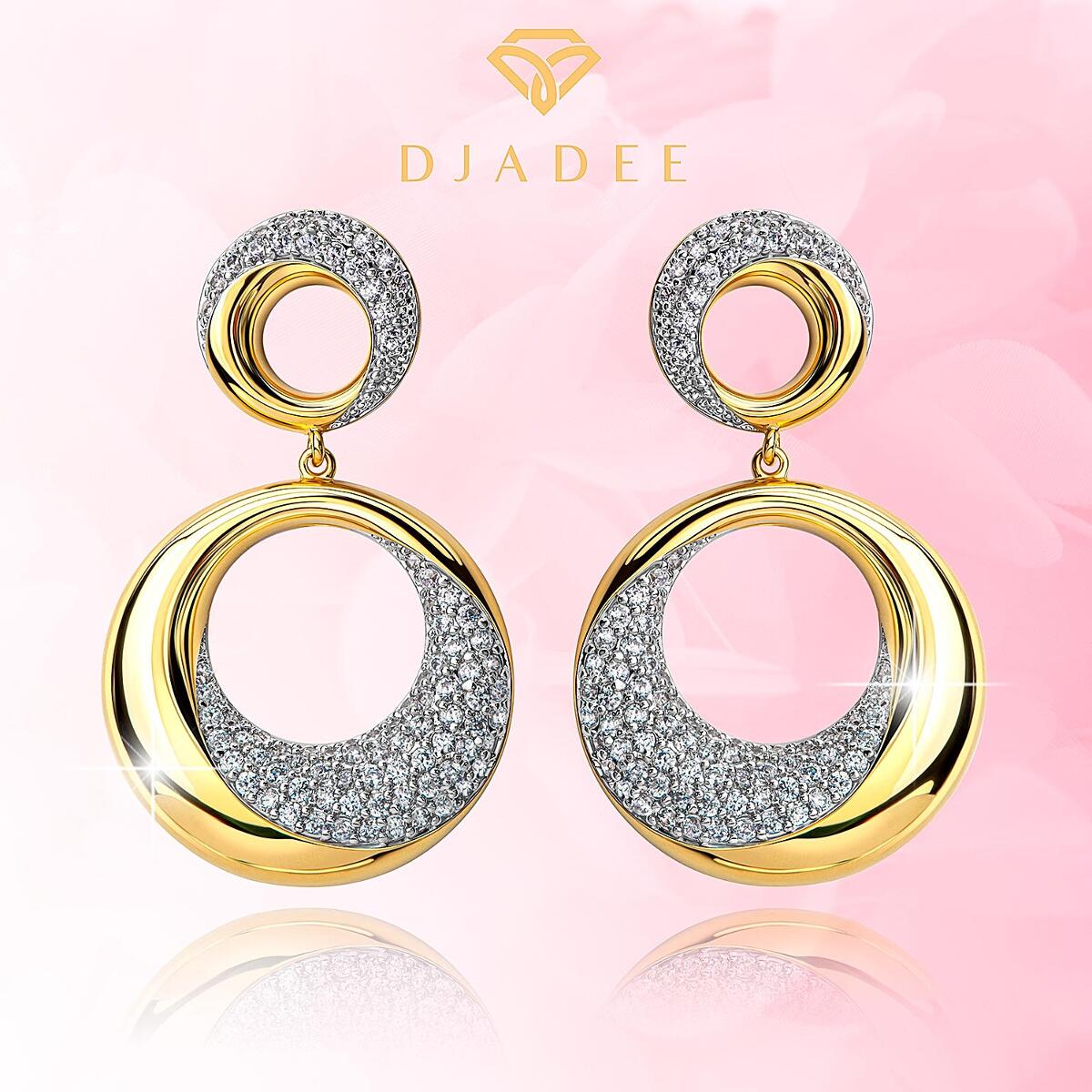 Zauberhafte runde Ohrstecker in edlem Design mit je zwei runden Elementen, besetzt mit strahlendem Cubic Zirkonia in Weiß. In hochwertiger Juweliersqualität gefertigt. Dieses exklusive Schmuckstück ist ein DJADEE Premium - Produkt und wird in einem eleganten Geschenk-Box geliefert. Wann immer Sie diese wunderschönenOhrringen im Gold-Look ausführen, werden Sie für Ihren erlesenenGeschmack Komplimente erhalten.