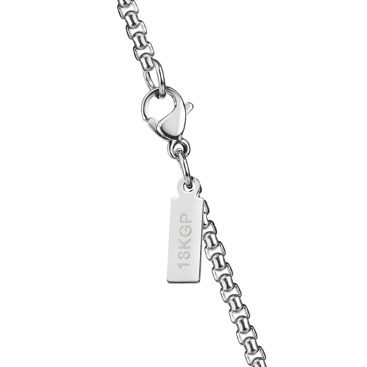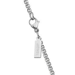 Dieser Set besteht im inneren aus massivem Edelstahl 316L und wurde mit einer 10 Mikron dicken Schicht aus 18 Karätigem Weißgold beschichtet. Das Schmuckstück  eignet sich hervorragend solo getragen oder in Kombination mit anderen Ketten.