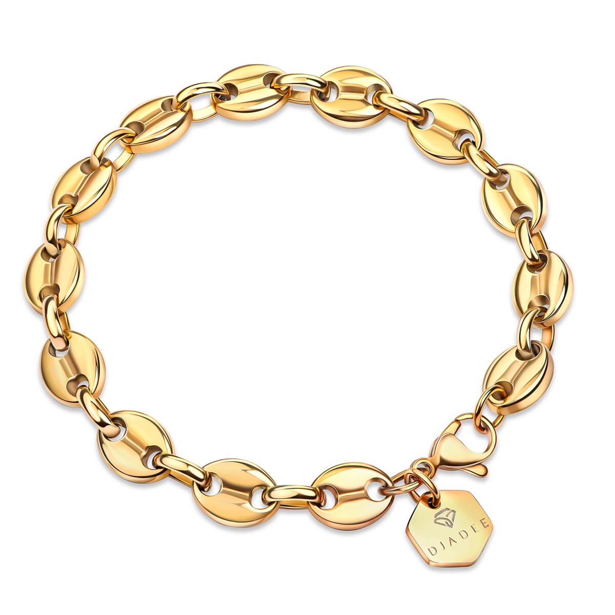 Das Armband wurde in 18 Karat (750er Gold) vergoldet und garantiert daher eine luxuriöse Ausstrahlung, dauerhaften Glanz, kein Abfärben durch die Vergoldung, rostfrei, nickelfrei, hochwertig verarbeitet, Farbe und Glanz wie echtes Gold.