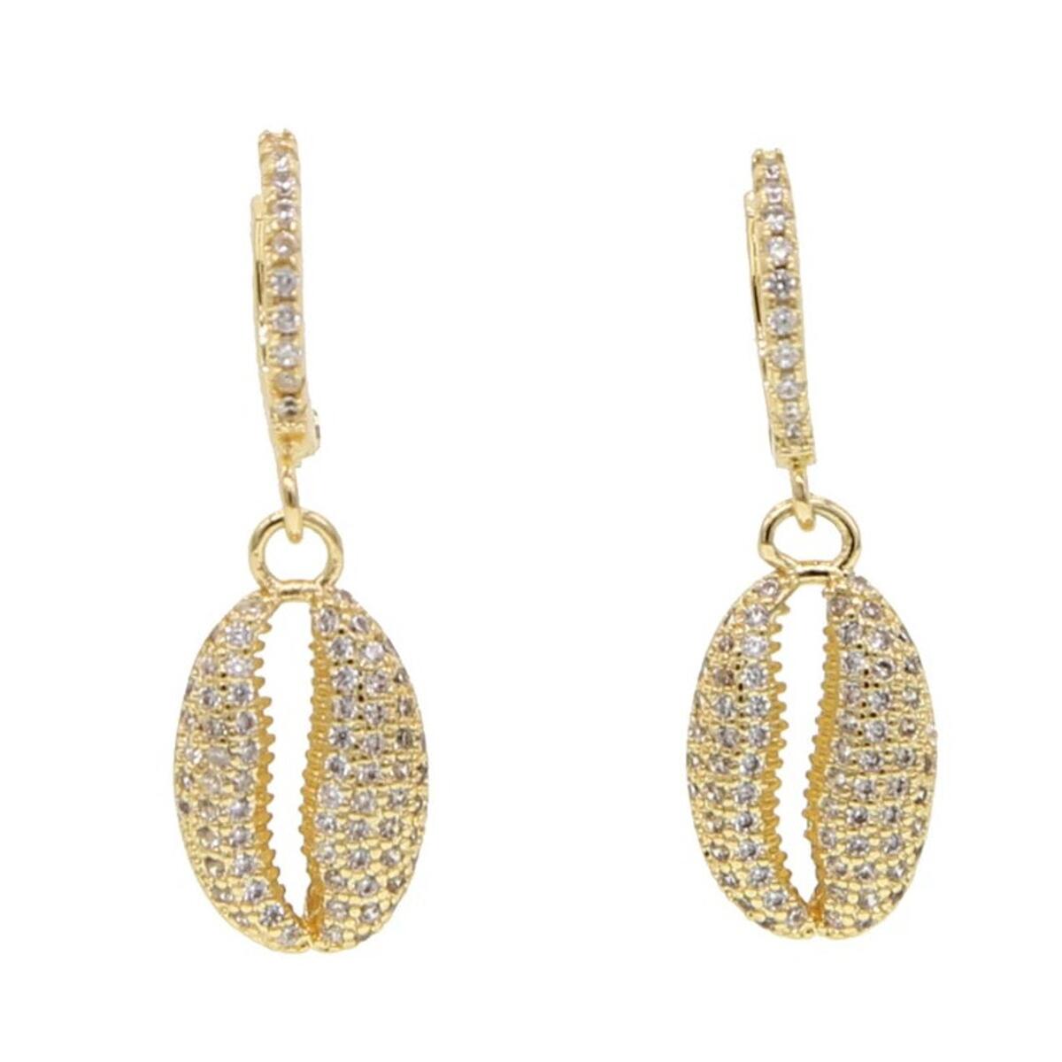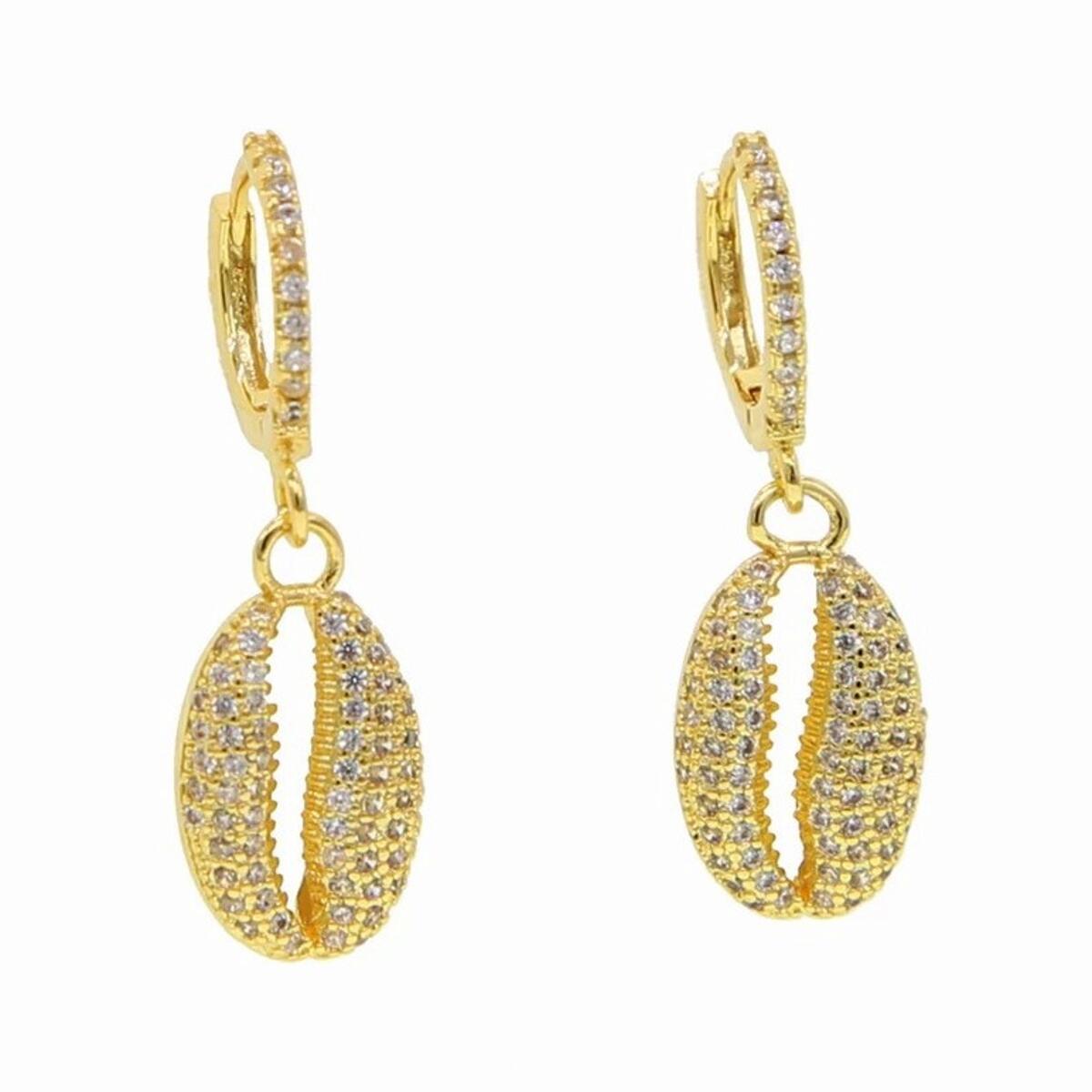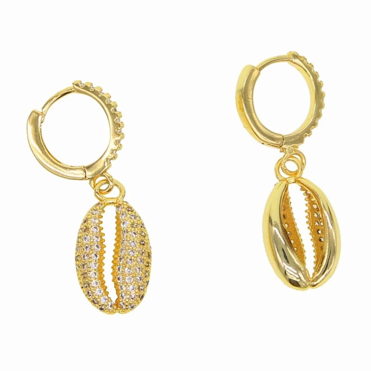 Das ist schlichte Eleganz und glamouröser Chic in einem! Zwei wertvolle Kaurimuscheln, die dein Gesicht mit einem herrlichen Funkeln einrahmen. An vergoldeten Muscheln schimmern funkelnde Zirkonia Steine . Das attraktive Design wertet lässige Outfits perfekt auf und verleiht deinem Look eine trendige Note. Passend zu diesen Ohrringen gibt es eine Kette und Armband als perfekte Ergänzung.Die Ohrringe sind 18 Karat (750er Gold) vergoldet und garantieren daher eine luxuriöse Ausstrahlung, dauerhaften Glanz, kein Abfärben durch die Vergoldung, rostfrei, nickelfrei, hochwertig verarbeitet, Farbe und Glanz wie echtes Gold.ZIRKONIA FUNKELN FAST SO SCHÖN WIE ECHTE BRILLANTEN - Zirkonia gelten als die perfektenBrillantkopien. Selbst Fachleuten fällt es auf den ersten Blickschwer, den künstlichen Stein von einem Brillanten zu unterscheiden. Und wenn sie wie hier auch noch im Brillantschliff veredelt sind, wirken das Strahlen und der Glanz noch authentischer.