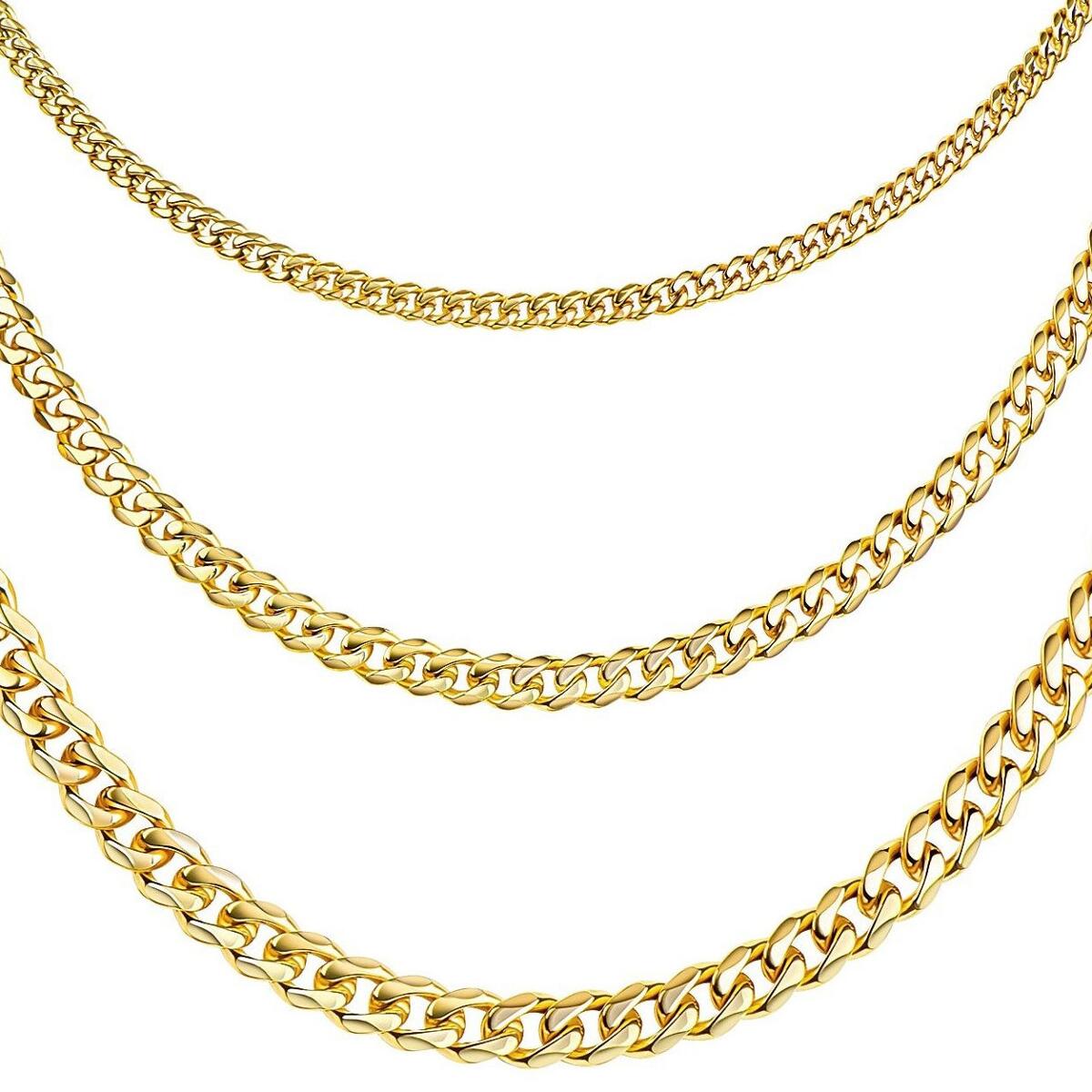 QUALITÄT - Die Kette wurde aufwendig mit 3 Goldschichten 18 Karat (750er) Gold vergoldet und garantiert daher eine luxuriöse Ausstrahlung, dauerhaften Glanz, kein Abfärben durch die Vergoldung, rostfrei, nickelfrei, hochwertig verarbeitet, Farbe und Glanz wie echtes Gold.