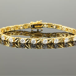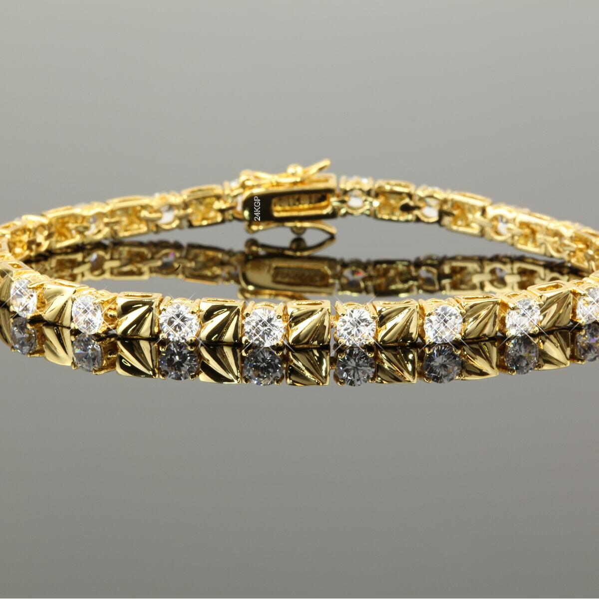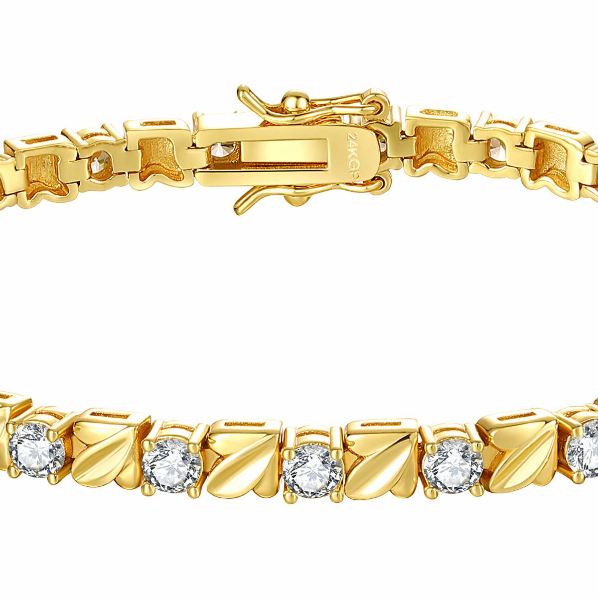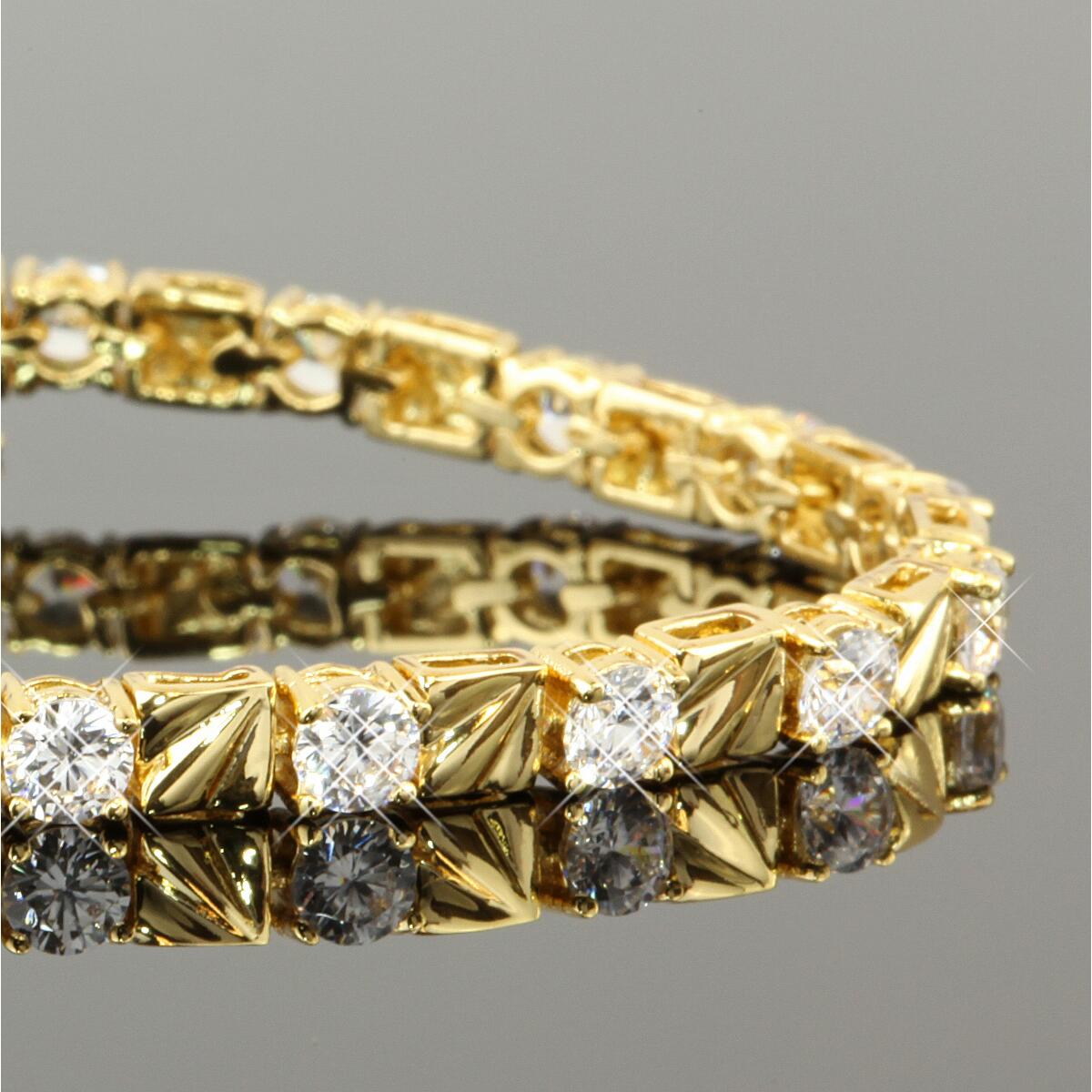 Dieses Armband von DJADEE besticht mit seinem unendlich vielseitigen Design. Die fröhlich schimmernden Elemente glänzen entlang des vergoldeten Designs. Mit diesem zeitlos trendigen Schmuckstück verleihst du deinem Alltagsoutfits einen Hauch von Glanz und Glamour. Die Breite beträgt 4 mm, als Verschluss dient ein Steckverschluss.ZIRKONIA GLÄNZEN WIE ECHTEN DIAMANTEN - Das Armband fasziniert durch den Glanz seiner Zirkonia. Stellen Sie sich schon jetzt das faszinierende Funkeln vor, dass Ihre Hand mit diesem Zirkonia - Armband in Szene setzen wird. Dieses Zirkonia - Armband ist ein stilvolles, elegantes Schmuckstück, das Sie vielseitig tragen können.