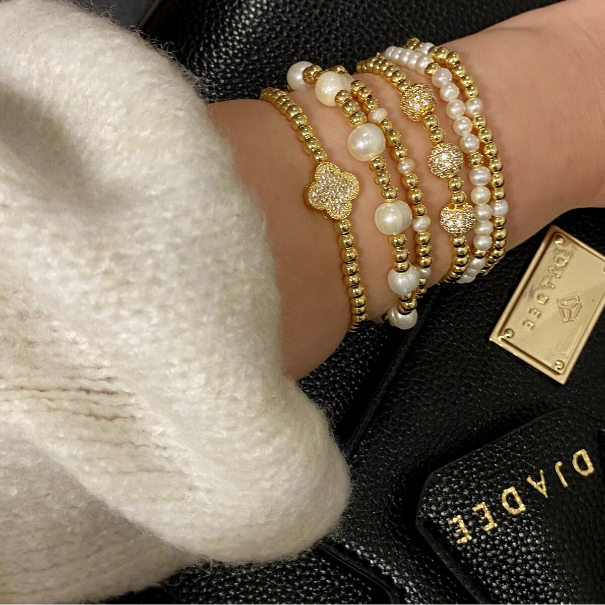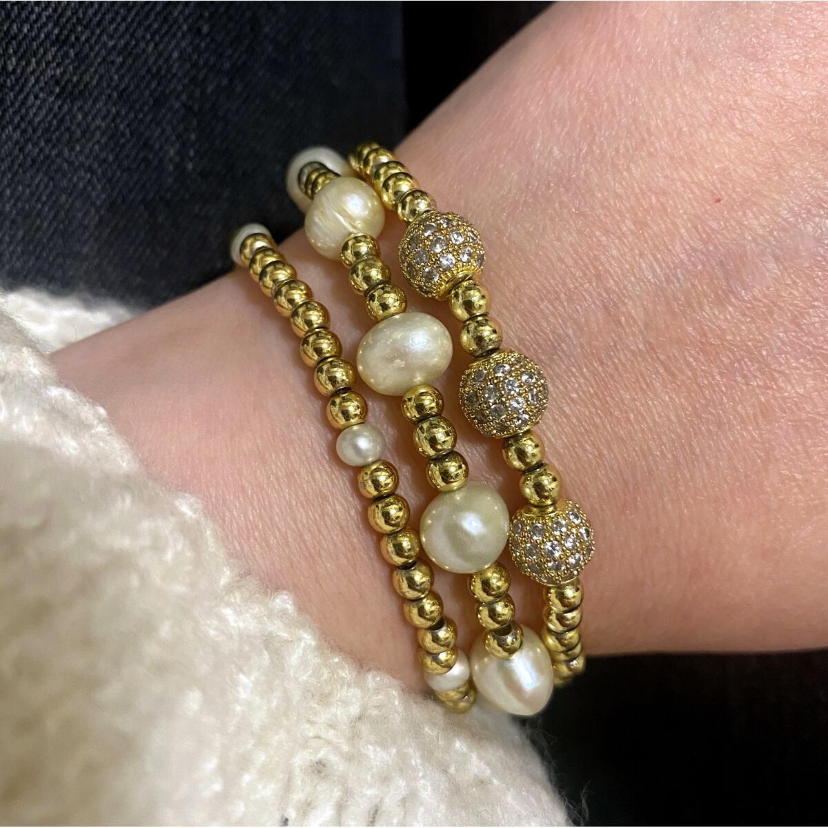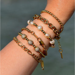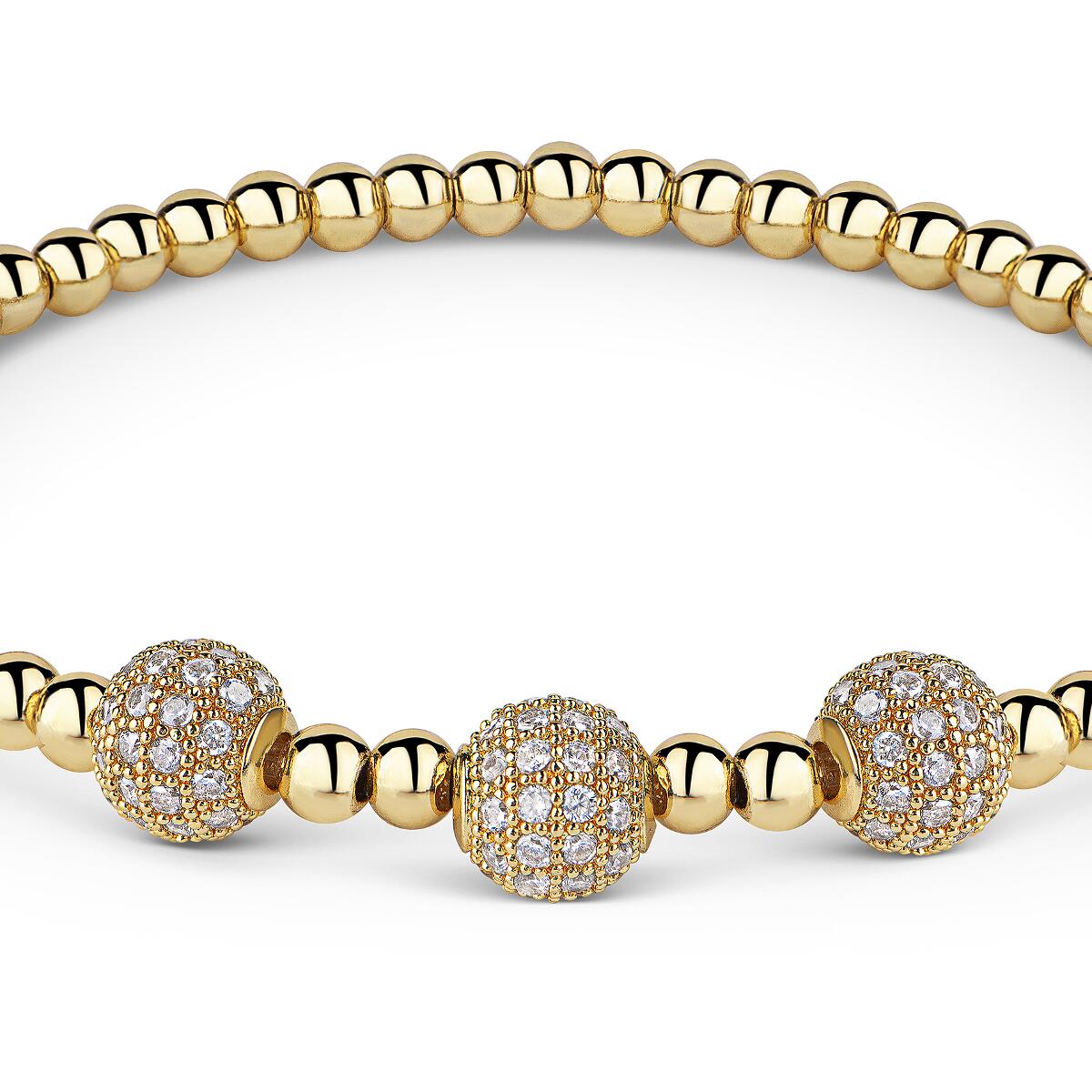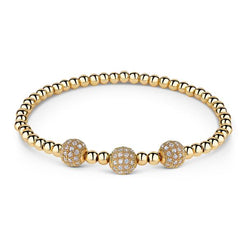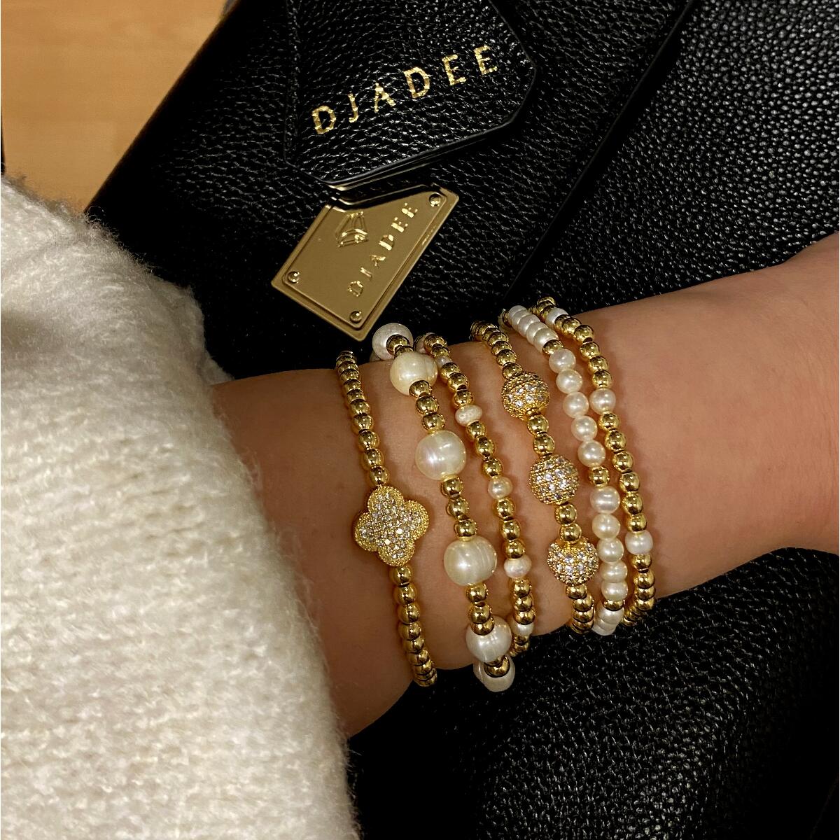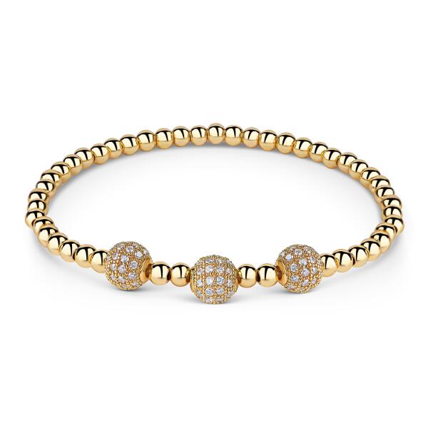 Dieses Kugelarmband von DJADEE begeistert mit seinem unendlich vielseitigen Design. Es besteht aus einer durchgehenden Perlenkette mit 3 großen Kugeln in Pave-Fassung. Die fröhlich schimmernden Kugel-Elemente glänzen mit seinen Steinen entlang des vergoldeten Designs. Mit diesem zeitlos trendigen Schmuckstück verleihst Du deinem Alltagsoutfits einen Hauch von Glanz und Glamour. Das Armband kann alleine oder in Kombination mit anderen Armbändern in verschiedenen Metallen und Farben kombiniert werden.