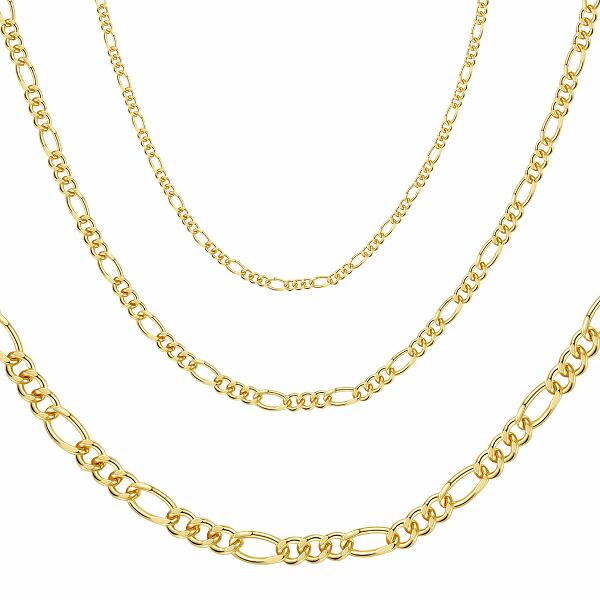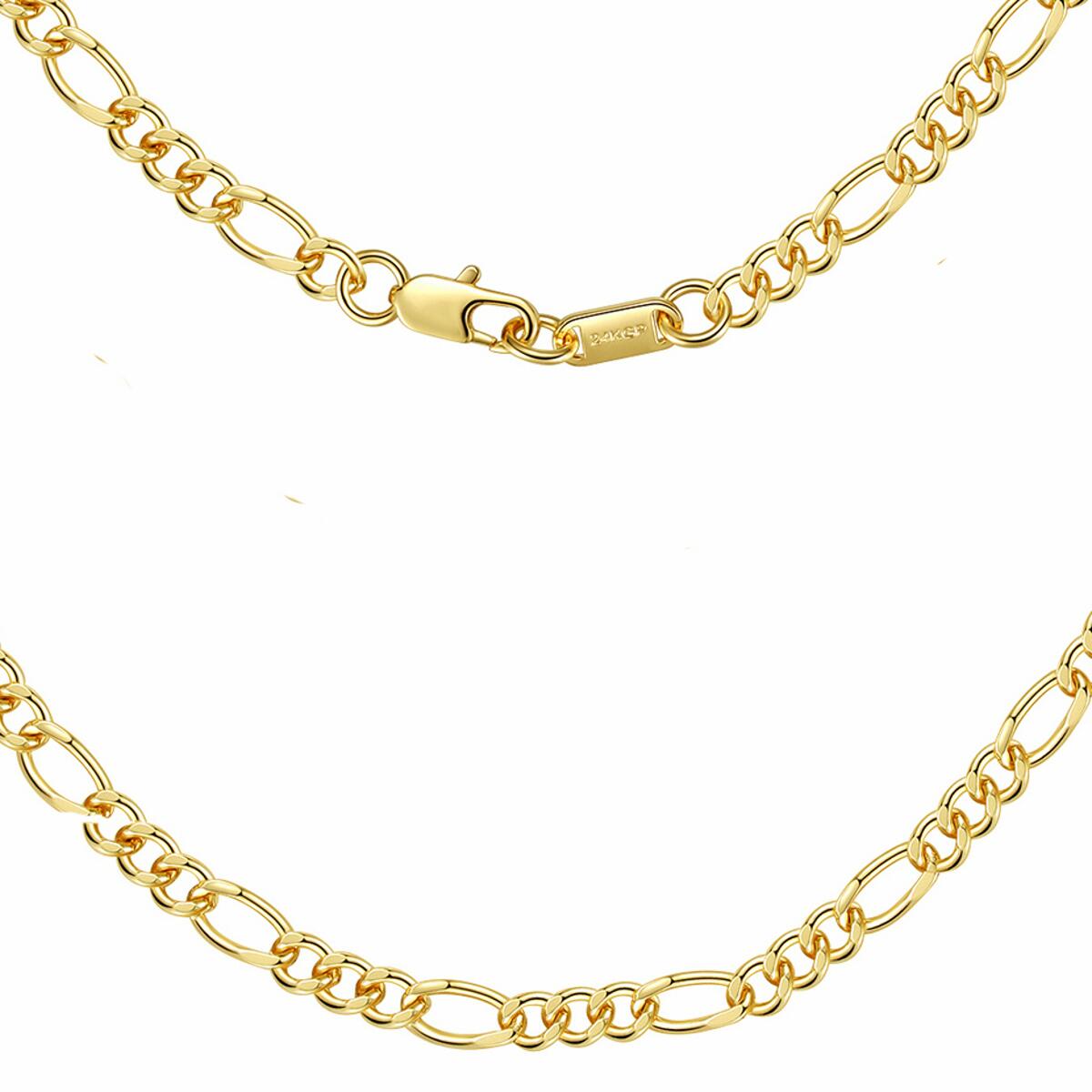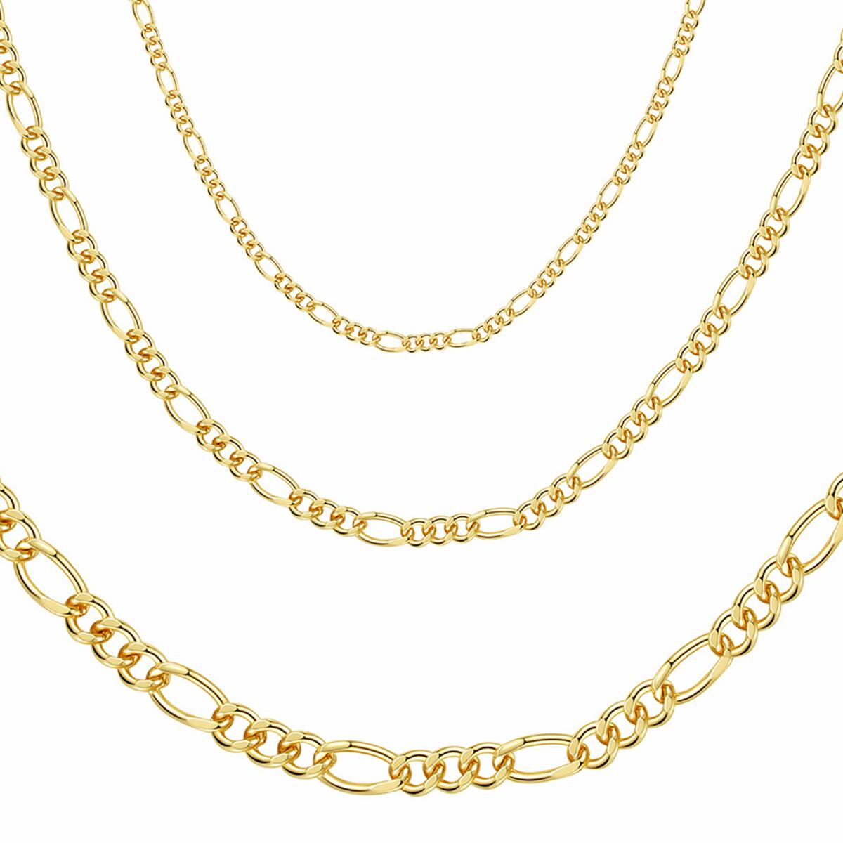 Lieferzeit: 2 - 3 TageDJADEE "FIGARO" KETTEElegante und klassische Figarokette, mit 24 Karat Gold vergoldet. Die Kette eignet sich hervorragend solo getragen oder in Kombination mit Anhängern oder anderen Ketten. Ganz unkompliziert verfeinert das Schmuckstück jedes Outfit und setzt dabei gekonnt Akzente im Dekolleté. Passend zu dieser Kette gibt es ein Armband als perfekte Ergänzung.GESCHENKIDEE - Dieses Schmuckstück ist das besondere Geschenk und wird garantiert für positive Überraschungen sorgen! Das perfekte Geschenk!