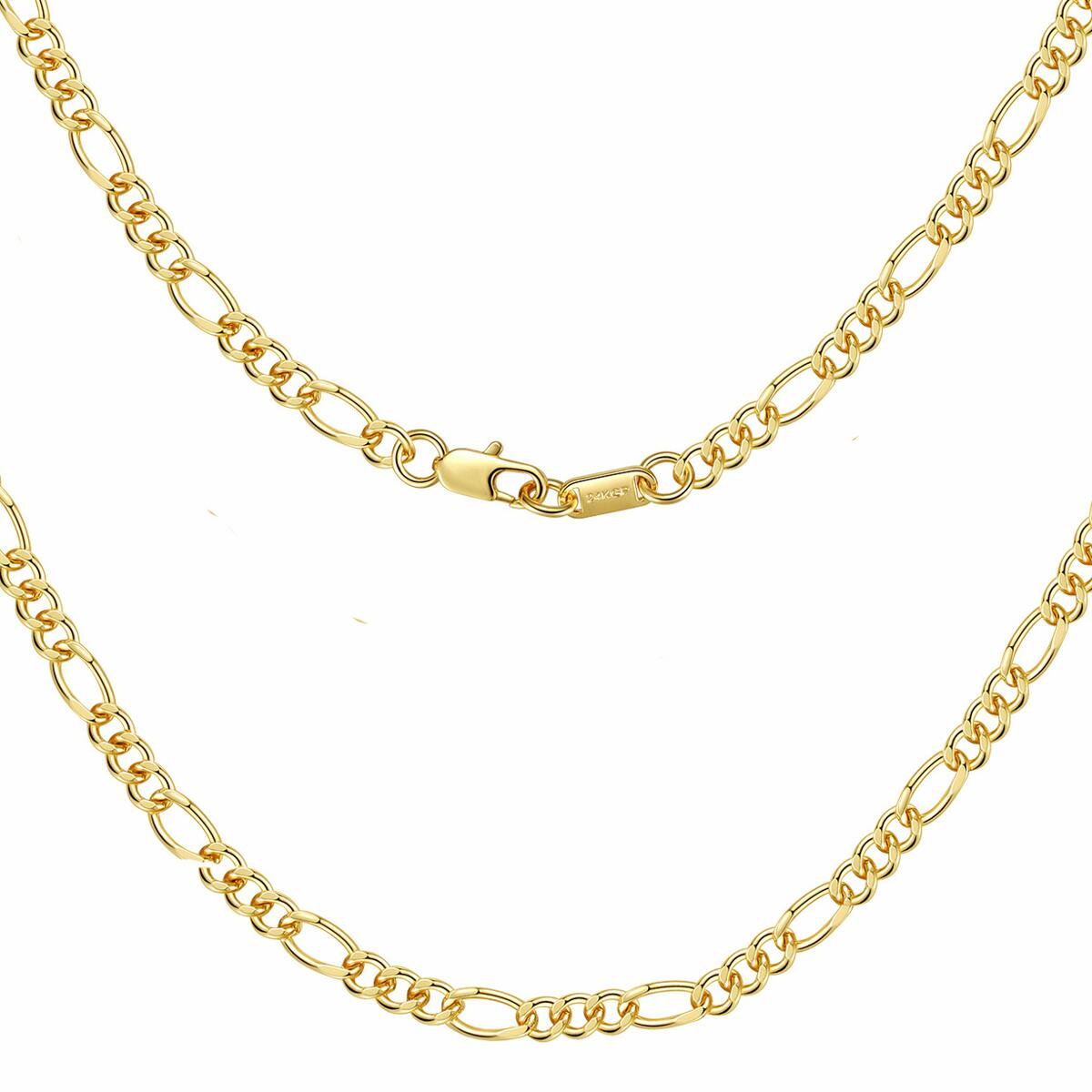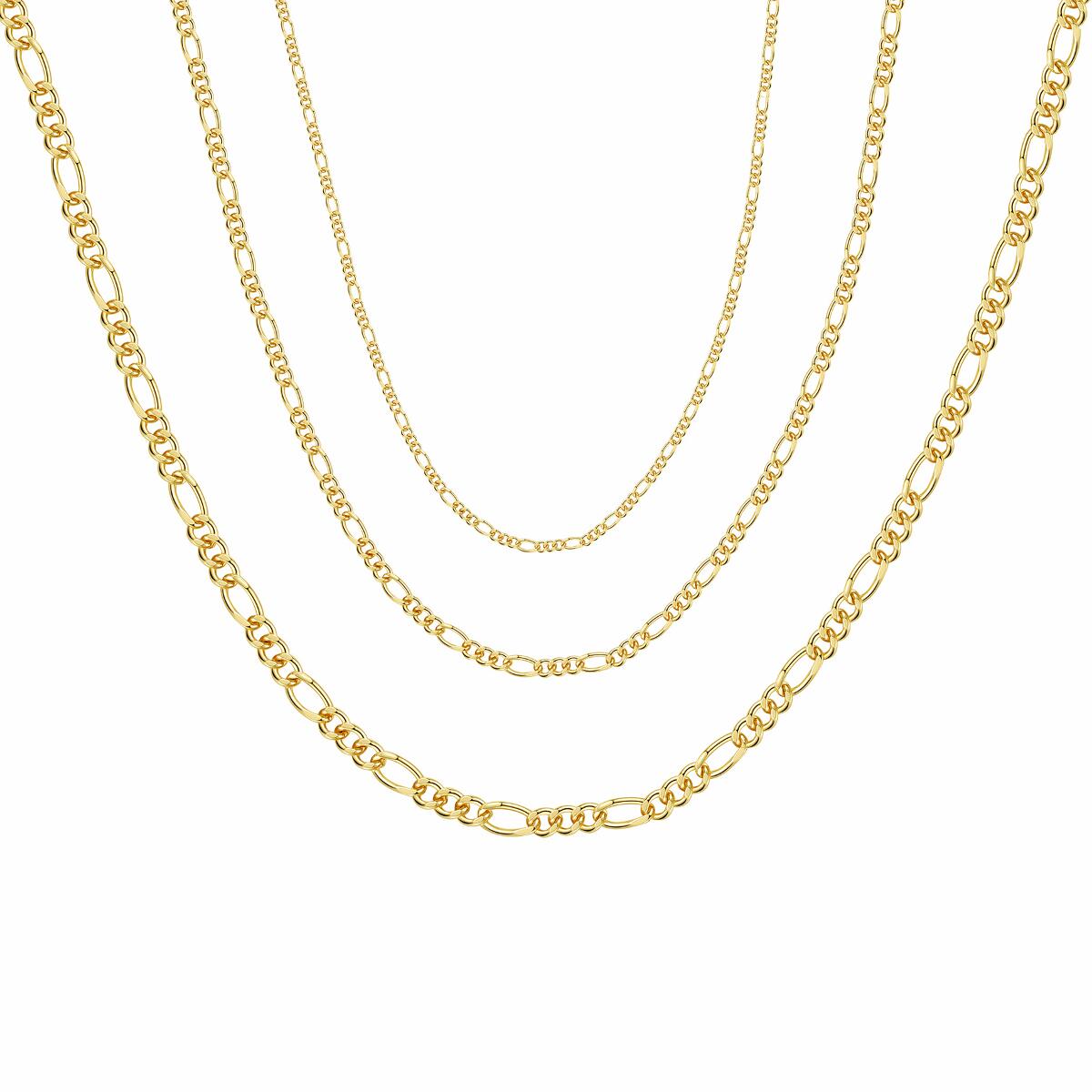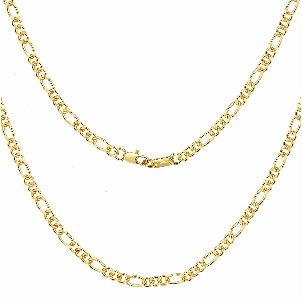 Lieferzeit: 2 - 3 TageDJADEE "FIGARO" KETTEElegante und klassische Figarokette, mit 24 Karat Gold vergoldet. Die Kette eignet sich hervorragend solo getragen oder in Kombination mit Anhängern oder anderen Ketten. Ganz unkompliziert verfeinert das Schmuckstück jedes Outfit und setzt dabei gekonnt Akzente im Dekolleté. Passend zu dieser Kette gibt es ein Armband als perfekte Ergänzung.GESCHENKIDEE - Dieses Schmuckstück ist das besondere Geschenk und wird garantiert für positive Überraschungen sorgen! Das perfekte Geschenk!