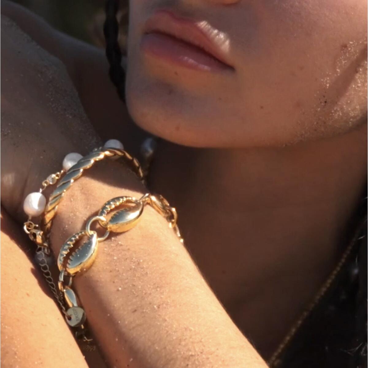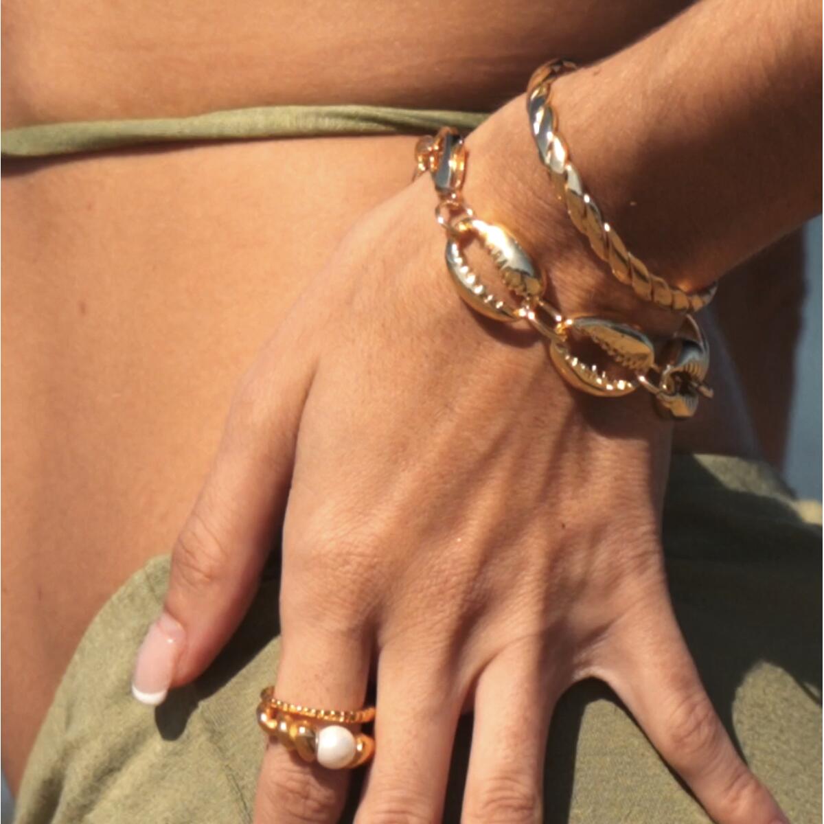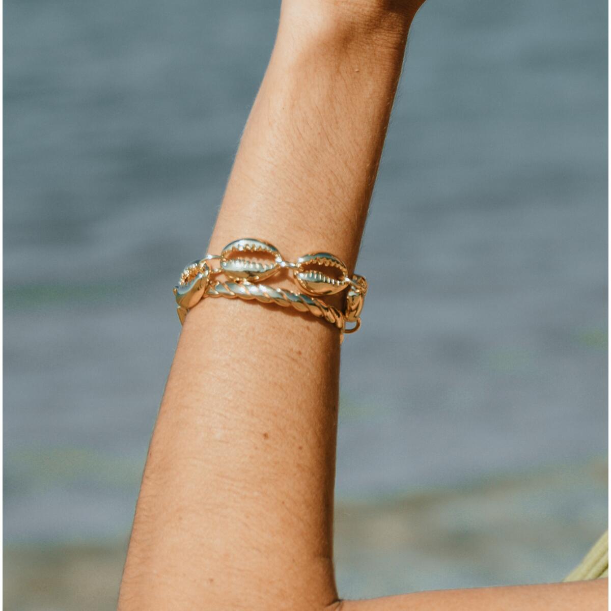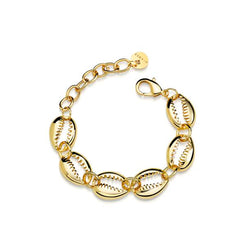 Golden Cowry Armband aus der Ocean Stories KollektionAUSGEZEICHNETE QUALITÄT: Keine Verfärbung, keine Hautreizung! Das Armband ist aus hochwertigem Messing, 24 Karat Gold vergoldet, mit einem edel-glänzenden Finish, sodass Du garantiert lange Zeit große Freude an diesem Schmuckstück hast. Qualität, die jeder sofort erkennen wird. Das Armband wurde aufwendig mit 3 Goldschichten 24 Karat (999er) Gold vergoldet und garantiert daher eine luxuriöse Ausstrahlung. Dauerhafter Glanz, kein Abfärben durch die Vergoldung, rostfrei, nickelfrei, hochwertig verarbeitet, Farbe und Glanz wie echtes Gold.WIDERSTANDSFÄHIG: Durch die hochwertige Vergoldung, erhält unser Schmuck einen extra starken Schutz und behält seine Farbe selbst im Salzwasser oder unter der Dusche. Die Beschichtung ist besonders haltbar und kann lange Zeit halten. Zusätzlich werden alle Schmuckstücke mit einer Anlaufschutzschicht für langanhaltenden Glanz veredelt.