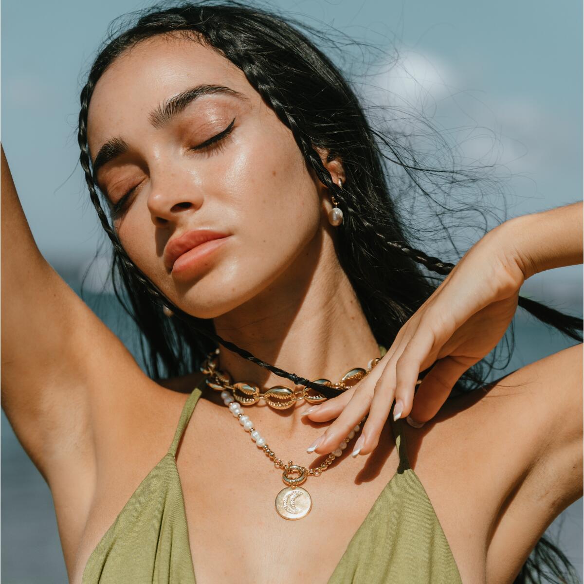 Golden Cowry Kette aus der Ocean Stories KollektionAUSGEZEICHNETE QUALITÄT: Keine Verfärbung, keine Hautreizung! Die Kette ist aus hochwertigem Messing, 24 Karat Gold vergoldet, mit einem edel-glänzenden Finish, sodass Du garantiert lange Zeit große Freude an diesem Schmuckstück hast. Qualität, die jeder an deinem Hals sofort erkennen wird. Die Kette wurde aufwendig mit 3 Goldschichten 24 Karat (999er) Gold vergoldet und garantiert daher eine luxuriöse Ausstrahlung. Dauerhafter Glanz, kein Abfärben durch die Vergoldung, rostfrei, nickelfrei, hochwertig verarbeitet, Farbe und Glanz wie echtes Gold.WIDERSTANDSFÄHIG: Durch die hochwertige Vergoldung, erhält unser Schmuck einen extra starken Schutz und behält seine Farbe selbst im Salzwasser oder unter der Dusche. Die Beschichtung ist besonders haltbar und kann lange Zeit halten. Zusätzlich werden alle Schmuckstücke mit einer Anlaufschutzschicht für langanhaltenden Glanz veredelt.