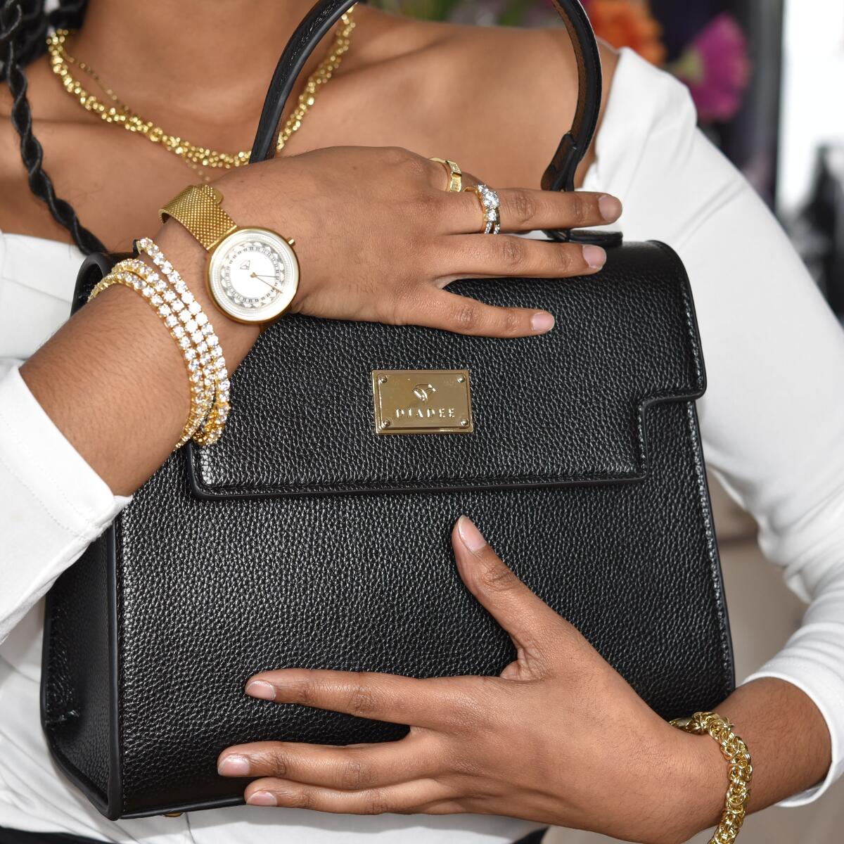 Die Tasche ist aufwendig aus raffiniertem Vegan-Leder handgefertigt und verfügt übereine geschmeidige Textur. Die goldenen Elemente sind einhübscher Eyecatcher, ebenso der Schulterriemen. Ob Business oder Freizeit - diese Handtasche sorgtimmer für einen modischen Auftritt!