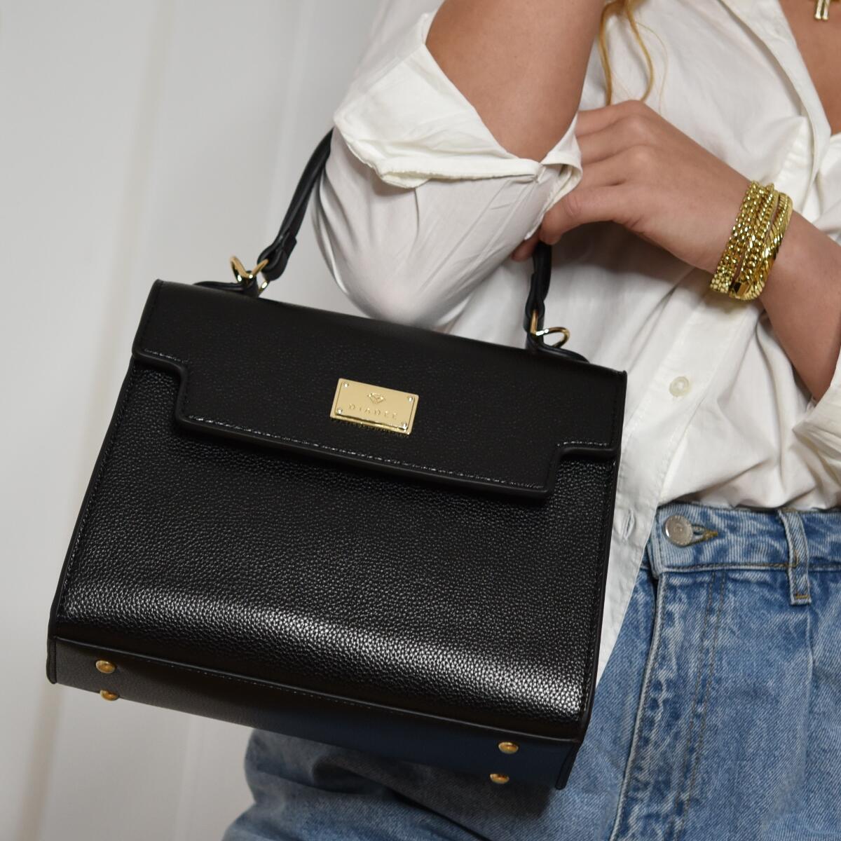 Lieferzeit: 2- 3 TageDJADEE HANDTASCHE "Guar"Die schicke Leder Handtasche von DJADEE überzeugt durch Eleganz,zeitlosem Design und modischen Details! Das klassische Design unserer "Guar" Handtasche macht mit ihrer eleganten Form auf sichaufmerksam. Sie passt zu jedem Outfit undder perfekte Begleiter für jeden Anlass. Im Inneren bietet eingroßzügiges Hauptfach viel Stauraum.