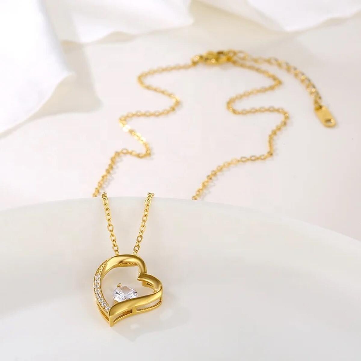 Diese elegante und romantisch verspielte Kette mit Herz Anhänger ist ein funkelndes Wunder mit leuchtenden Zirkonia-Steinen. Stillvoll verzaubert der Anhänger das Dekolleté jeder Trägerin und symbolisiert Liebe und Gelassenheit. An einer eleganten Ankerkette schmiegt sich das Herz in Ihr Dekolleté und fängt in den Facetten des Brillantschliffs das Licht ein. Durch seine unaufdringliche Eleganz, passt dieses Schmuckstück zu jedem Outfit und Anlass. Die feine Kette mit verstellbarer Länge und dem filigranen Herzen ist vielseitig kombinierbar und passt zu jedem Outfit. Das Design ist sehr modern und zugleich zeitlos. In Kombination mit weiteren Schmuckstücken oder den passenden Ohrringen sieht das Modell besonders toll aus.QUALITÄT - Die Kette wurde aufwendig mit 3 Goldschichten 18 Karat (750er) Gold vergoldet und garantiert daher eine luxuriöse Ausstrahlung, dauerhaften Glanz, kein Abfärben durch die Vergoldung, rostfrei, nickelfrei, hochwertig verarbeitet, Farbe und Glanz wie echtes Gold.