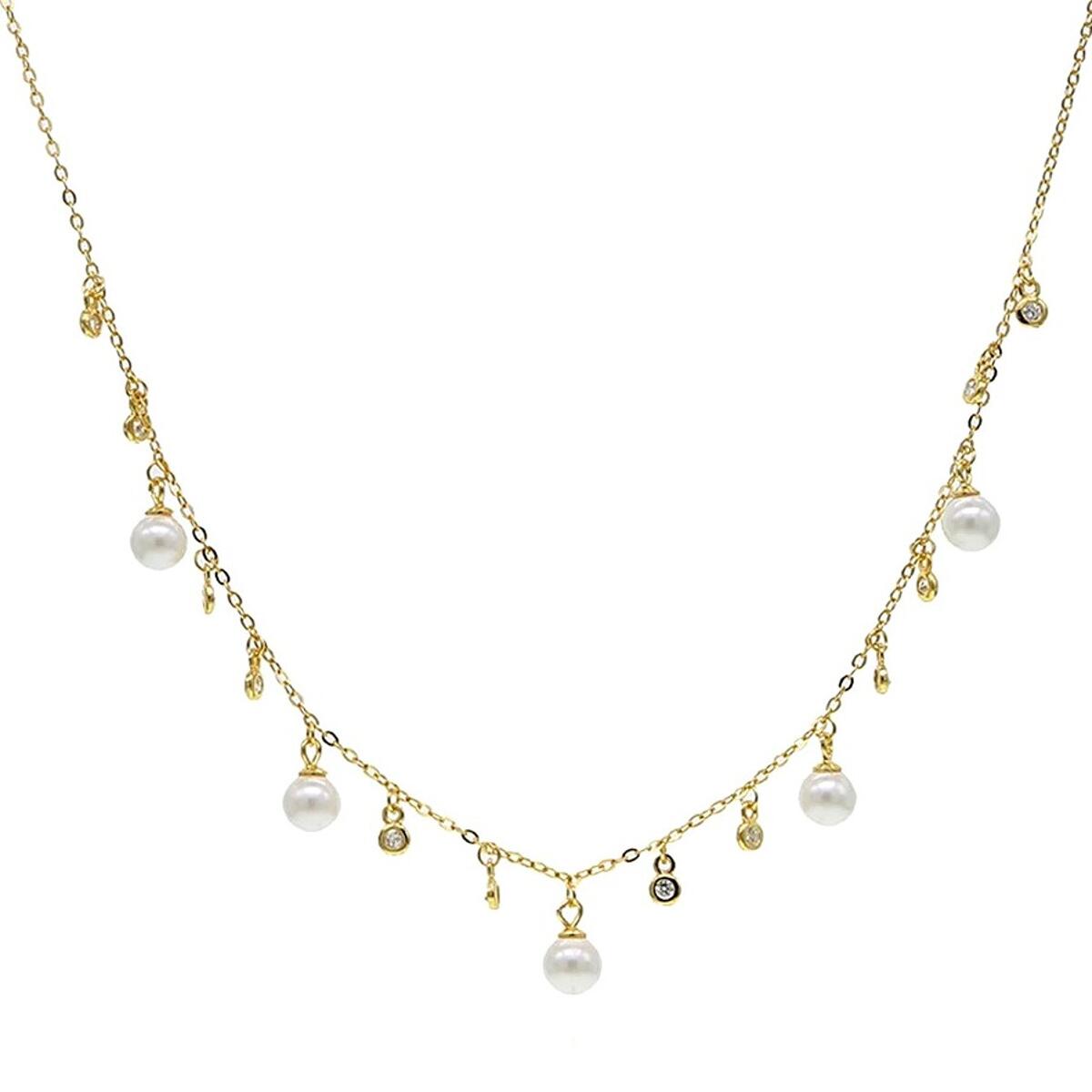 Die zarte, elegante "ISADORA" Perlenkette verfügt über eine feingliedrige Kette mit fünf Süßwasser-Biwa-Perlen. Die Länge der Kette ist von 35 bis 45 cm einstellbar. Bestandteil des Verschlusses ist eine Verlängerung, mit der die Länge der Halskette reguliert werden kann.Durch ihre Schlichtheit lässt sie sich perfekt mit anderen Ketten kombinieren.