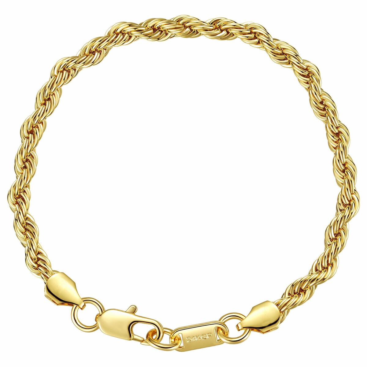 QUALITÄT - Das Armband ist mit 24 Karat (999er Gold) vergoldet und garantiert daher eine luxuriöse Ausstrahlung. Dauerhafter Glanz, kein Abfärben durch die Vergoldung, rostfrei, nickelfrei, hochwertig verarbeitet, Farbe und Glanz wie echtes Gold. Durch die hochwertige Beschichtung erhält unser Schmuck einen extra starken Schutz und bleibt langlebig. Das Schmuckstück behält seine Farbe selbst im Salzwasser, beim Sport, Duschen und Schwimmen.