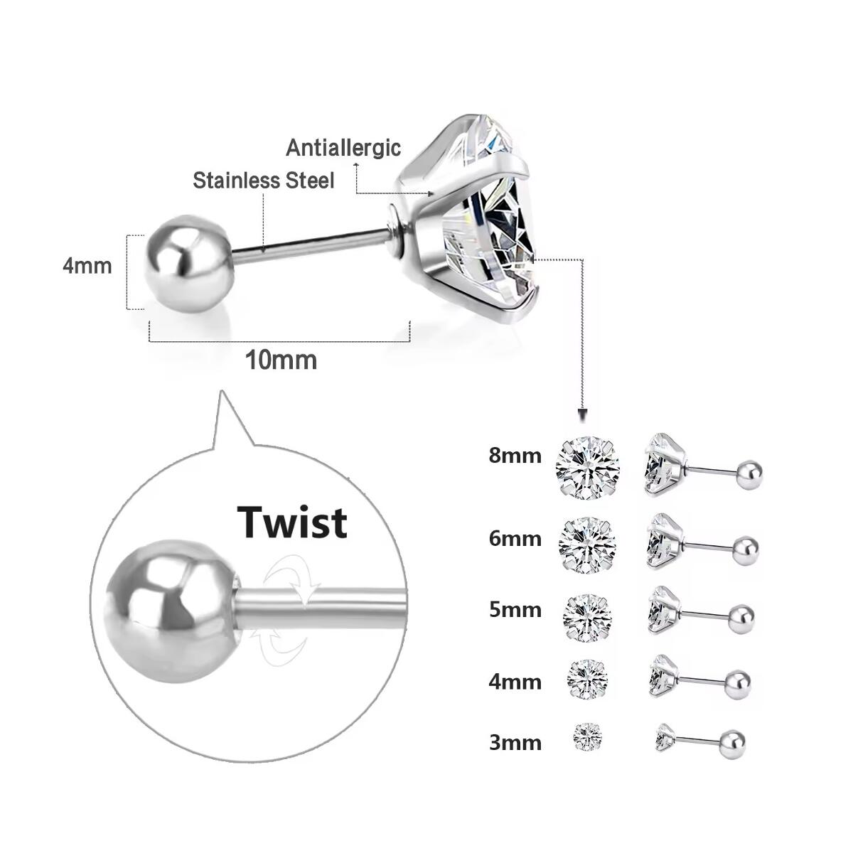 Diese eleganten Ohrstecker von DJADEE vereinen zeitloses Design mit hochwertiger Verarbeitung. Die Cubic Zirkonia Steine im brillanten Schliff funkeln wie echte Diamanten und sind in verschiedenen Größen von 2 bis 8 mm Durchmesser erhältlich. Die 18 Karat vergoldete Edelstahlfassung ist sowohl in Gold als auch in Silber verfügbar und bietet dank ihrer hochwertigen Verarbeitung eine ausgezeichnete Haltbarkeit. Die Ohrstecker sind wasserfest und hypoallergen, wodurch sie sich perfekt für den täglichen Gebrauch eignen. Die hochwertige Verarbeitung garantiert, dass die Ohrringe nicht abfärben und ihre Strahlkraft dauerhaft behalten. Das zeitlose Design macht diese Ohrstecker zu einem vielseitigen Accessoire, das sowohl für Damen als auch für Herren geeignet ist. Die DJADEE Live Diamond Ohrstecker sind eine perfekte Wahl für alle, die Wert auf Qualität und zeitlose Eleganz legen.AUSGEZEICHNETE QUALITÄT: Keine Verfärbung, keine Hautreizung! Die Ohrringe sind aus hochwertigem Edelstahl, 18 Karat Gold vergoldet, mit einem edel-glänzenden Finish, sodass Du garantiert lange Zeit große Freude an diesem Schmuckstück hast. Qualität, die jeder an deinem Ohr sofort erkennen wird. Die Ohrringe wurden aufwendig vergoldet und garantieren daher eine luxuriöse Ausstrahlung, dauerhaften Glanz, kein Abfärben, rostfrei, nickelfrei, hochwertig verarbeitet, Farbe und Glanz wie echtes Gold.WIDERSTANDSFÄHIG – Durch die hochwertige Vergoldung, erhält unser Schmuck einen extra starken Schutz und behält seine Farbe selbst im Salzwasser oder unter der Dusche. Die Beschichtung ist besonders haltbar und kann langlebig halten. Zusätzlich werden alle Schmuckstücke mit einer Anlaufschutzschicht für langanhaltenden Glanz veredelt.
