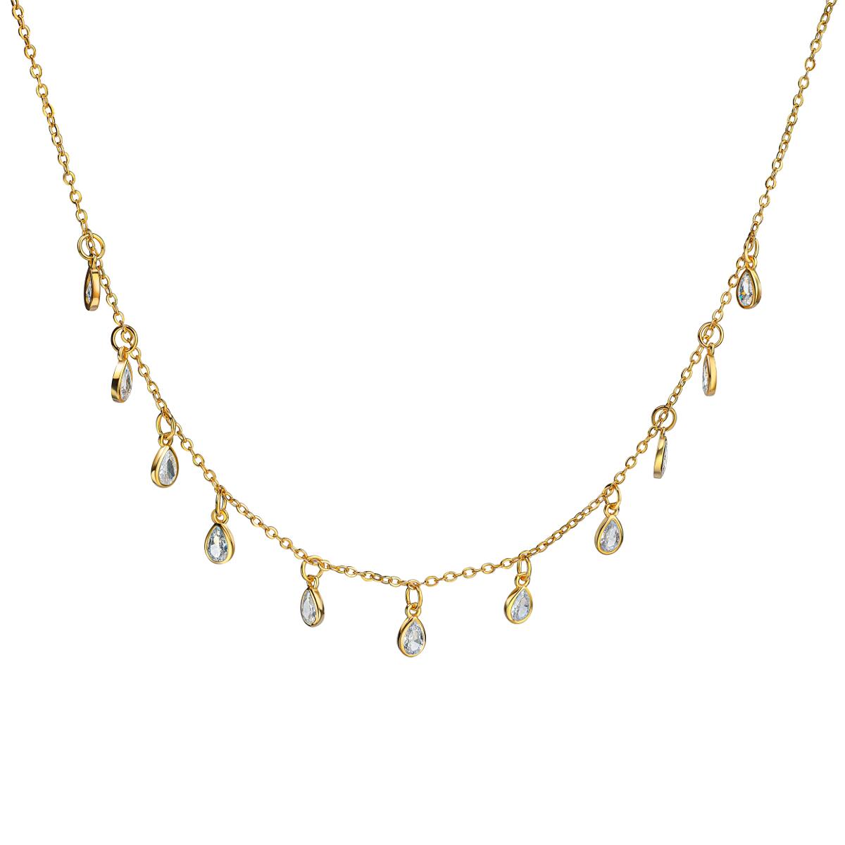 Unsere "LIVIA" Kette mit ihren 11 Zirkonia-Anhängern bringt deine Schönheit noch mehr zum Strahlen. Gerade im Licht funkelt die Kette ganz toll in tausend Facetten. Wir finden, dass diese feingliedrige Kette mit Karabinerverschluss der perfekte Begleiter zum Ausführen ist!QUALITÄT - Die Kette wurde mit 18 Karat (750er Gold) vergoldet und garantiert daher eine luxuriöse Ausstrahlung, dauerhaften Glanz, kein Abfärben durch die Vergoldung, rostfrei, nickelfrei, hochwertig verarbeitet, Farbe und Glanz wie echtes Gold.