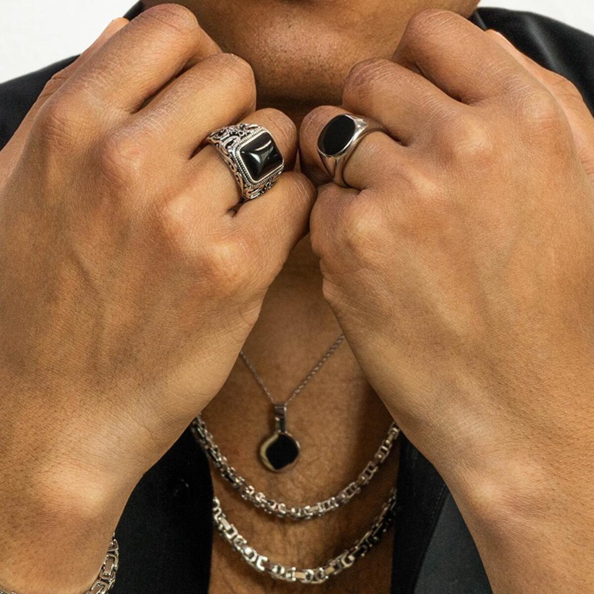 Extravaganter "Lord" Herrenring mit Onyx