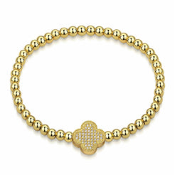 Dieses Armband von DJADEE begeistert mit seinem unendlich vielseitigen Design. Es besteht aus einer durchgehenden Perlenkette mit einer Blume in Pave-Fassung. Die fröhlich schimmerndes Blumen-Element glänzt mit seinen Zirkonia Steinen entlang des vergoldeten Designs. Mit diesem zeitlos trendigen Schmuckstück verleihst Du deinem Alltagsoutfits einen Hauch von Glanz und Glamour. Das Armband kann alleine oder in Kombination mit anderen Armbändern in verschiedenen Metallen und Farben kombiniert werden.