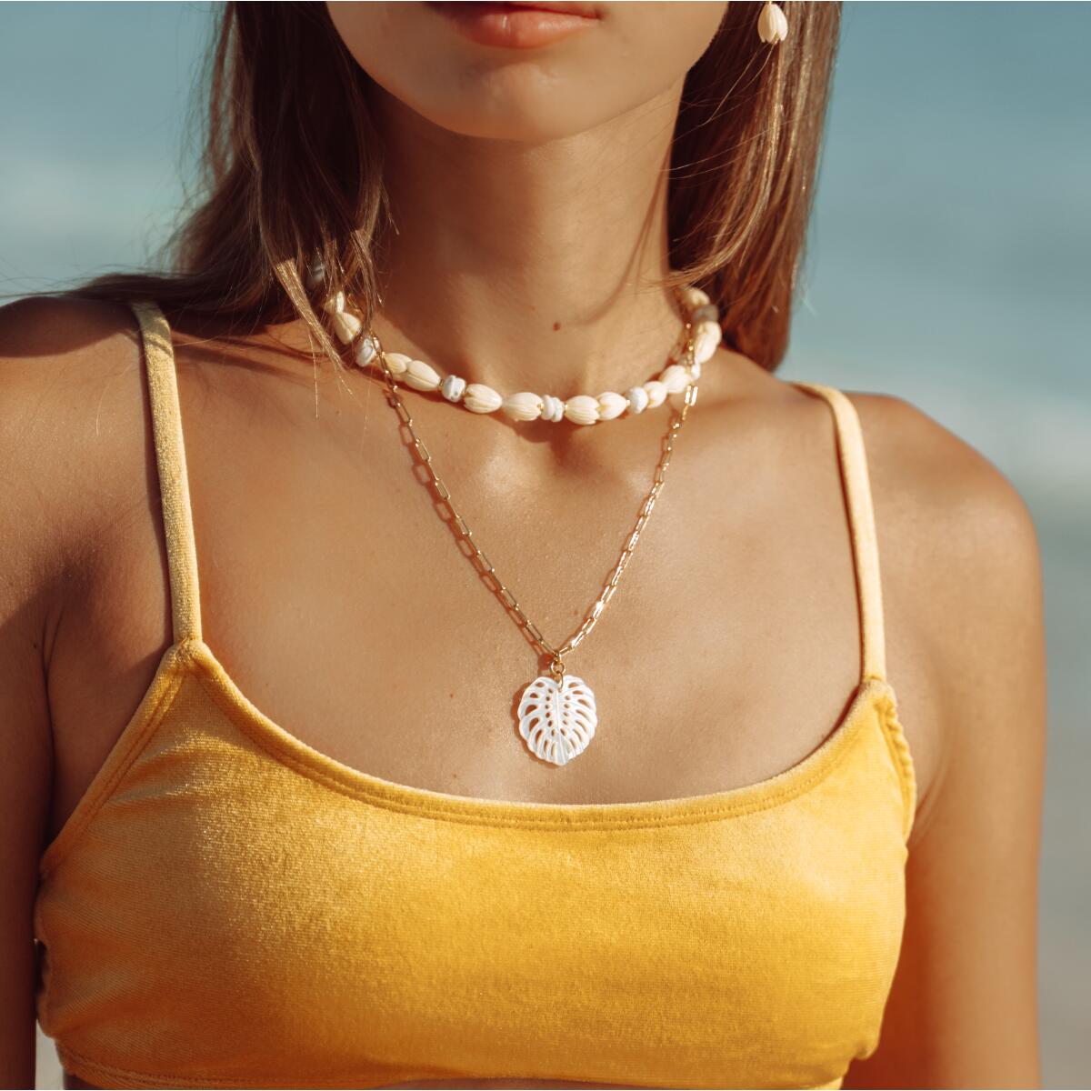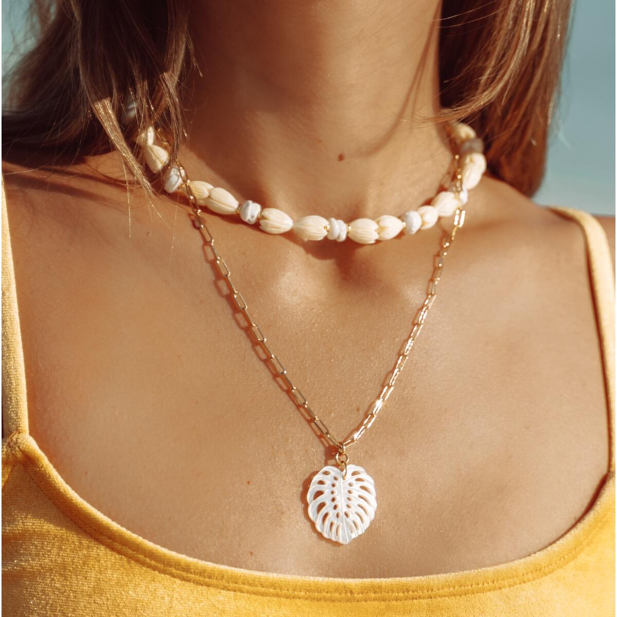 Monstera Leaf Kette aus der Ocean Stories KollektionDie Monstera Leaf Kette ist dein neuer Glücksbringer für die Erfüllung deiner größten Träume. Sie ist dein täglicher Begleiter und ein Symbol der Ehre, Beständigkeit und Langlebigkeit. In Ostasien ist das Blatt ein Symbol für Glück und Wohlstand und wird oft als Schutzengel und Talisman verschenkt.AUSGEZEICHNETE QUALITÄT: Keine Verfärbung, keine Hautreizung! Die Kette ist aus hochwertigem Messing, 24 Karat Gold vergoldet, mit einem edel-glänzenden Finish, sodass Du garantiert lange Zeit große Freude an diesem Schmuckstück hast. Qualität, die jeder an deinem Hals sofort erkennen wird. Die Kette wurde aufwendig mit 3 Goldschichten 24 Karat (999er) Gold vergoldet und garantiert daher eine luxuriöse Ausstrahlung. Dauerhafter Glanz, kein Abfärben durch die Vergoldung, rostfrei, nickelfrei, hochwertig verarbeitet, Farbe und Glanz wie echtes Gold.WIDERSTANDSFÄHIG: Durch die hochwertige Vergoldung, erhält unser Schmuck einen extra starken Schutz und behält seine Farbe selbst im Salzwasser oder unter der Dusche. Die Beschichtung ist besonders haltbar und kann lange Zeit halten. Zusätzlich werden alle Schmuckstücke mit einer Anlaufschutzschicht für langanhaltenden Glanz veredelt.