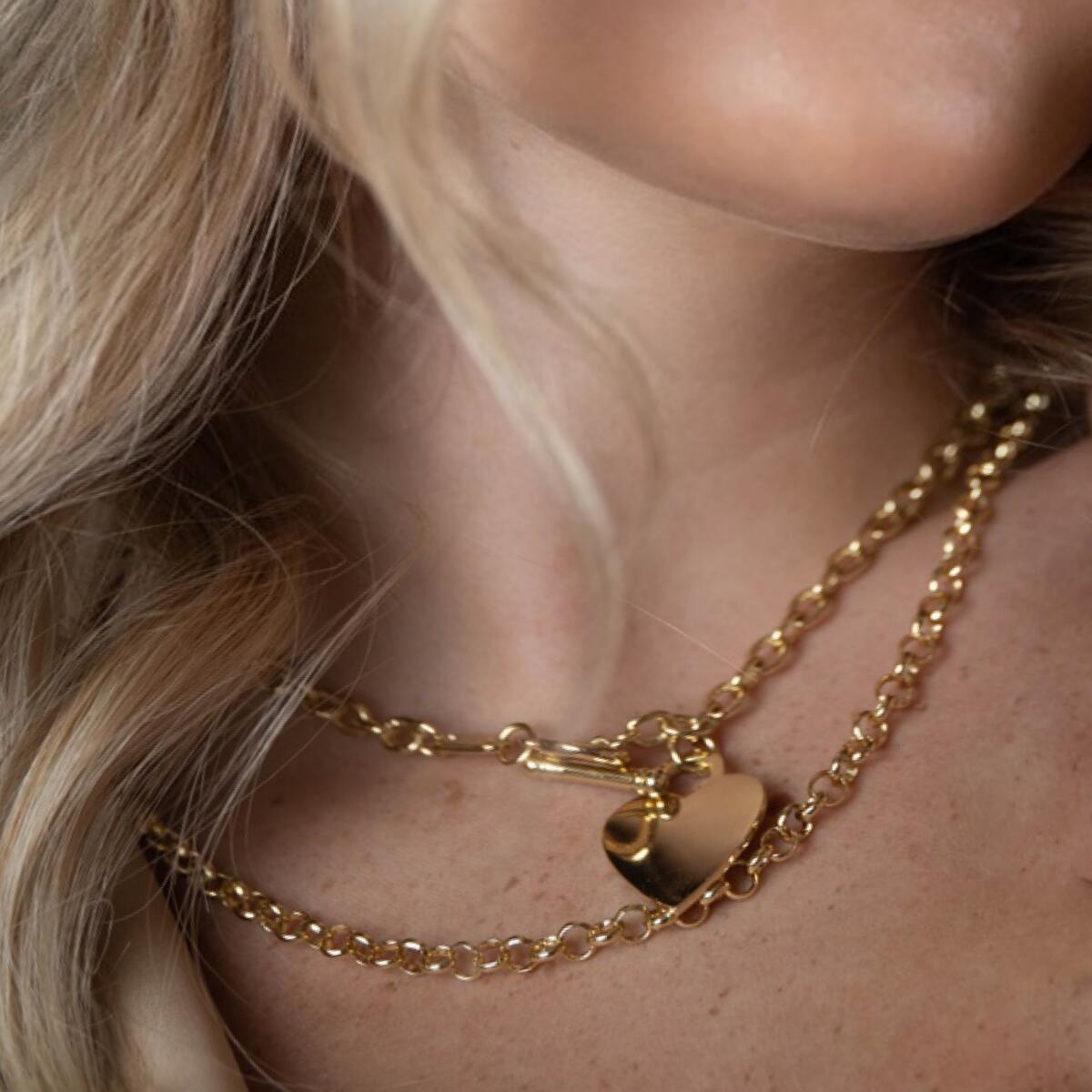Stylish und bezaubernd zugleich - schicke Kette mit einem bezaubernden beidseitig polierten Herz - Anhänger hochwertig vergoldet. Der Anhänger ist ca.22 x 29 mm groß.Das Schmuckstück eignet sich hervorragend als Geschenk zu verschiedenen Anlässen. Ob zum Geburtstag, Weihnachten, Valentinstag oder einfach zwischendurch liegen Sie mit dieser Kette genau richtig.