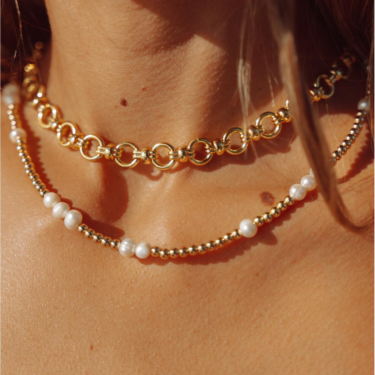Pearl Fusion Kette aus der Ocean Stories KollektionAUSGEZEICHNETE QUALITÄT: Keine Verfärbung, keine Hautreizung! Die Kette ist aus hochwertigem Messing, 24 Karat Gold vergoldet, mit einem edel-glänzenden Finish, sodass Du garantiert lange Zeit große Freude an diesem Schmuckstück hast. Qualität, die jeder an deinem Hals sofort erkennen wird. Die Kette wurde aufwendig mit 3 Goldschichten 24 Karat (999er) Gold vergoldet und garantiert daher eine luxuriöse Ausstrahlung. Dauerhafter Glanz, kein Abfärben durch die Vergoldung, rostfrei, nickelfrei, hochwertig verarbeitet, Farbe und Glanz wie echtes Gold.WIDERSTANDSFÄHIG: Durch die hochwertige Vergoldung, erhält unser Schmuck einen extra starken Schutz und behält seine Farbe selbst im Salzwasser oder unter der Dusche. Die Beschichtung ist besonders haltbar und kann lange Zeit halten. Zusätzlich werden alle Schmuckstücke mit einer Anlaufschutzschicht für langanhaltenden Glanz veredelt.
