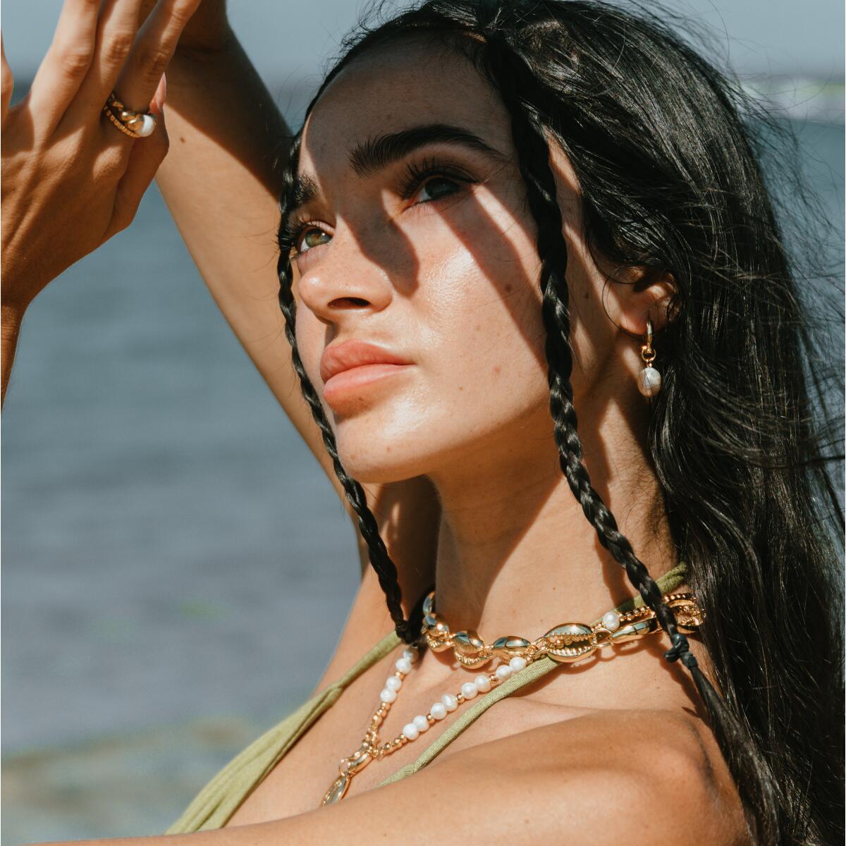 Lieferzeit: 2-3 TagePearl Treasure Kette aus der Ocean Stories KollektionMystische Eleganz: Die Kombination aus echten Süßwasserperlen und einem funkelnden Mond-Anhänger, besetzt mit Cubic Zirkonia Steinen, verleiht diesem Schmuckstück eine faszinierende Ausstrahlung.AUSGEZEICHNETE QUALITÄT: Keine Verfärbung, keine Hautreizung! Die Kette ist aus hochwertigem Messing, 24 Karat Gold vergoldet, mit einem edel-glänzenden Finish, sodass Du garantiert lange Zeit große Freude an diesem Schmuckstück hast. Qualität, die jeder an deinem Hals sofort erkennen wird. Die Kette wurde aufwendig mit 3 Goldschichten 24 Karat (999er) Gold vergoldet und garantiert daher eine luxuriöse Ausstrahlung. Dauerhafter Glanz, kein Abfärben durch die Vergoldung, rostfrei, nickelfrei, hochwertig verarbeitet, Farbe und Glanz wie echtes Gold.WIDERSTANDSFÄHIG: Durch die hochwertige Vergoldung, erhält unser Schmuck einen extra starken Schutz und behält seine Farbe selbst im Salzwasser oder unter der Dusche. Die Beschichtung ist besonders haltbar und kann langlebig halten. Zusätzlich werden alle Schmuckstücke mit einer Anlaufschutzschicht für langanhaltenden Glanz veredelt.
