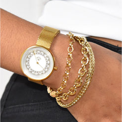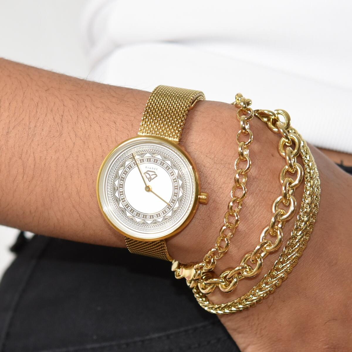 Ein wunderschönes Armband in fantasievollem Design. Egal ob sportlich oder elegant, dieses Armband kann zu jedem Anlass getragen werden. Das Schmuckstück zeichnet sich nicht nur durch sein gelungenes Design, sondern auch durch die Verwendung von qualitativ hochwertiger Vergoldung, sowie exzellenter Verarbeitung aus. Hierdurch erreichen wir einen hohen Tragekomfort, lange Haltbarkeit und beste Kundenzufriedenheit.