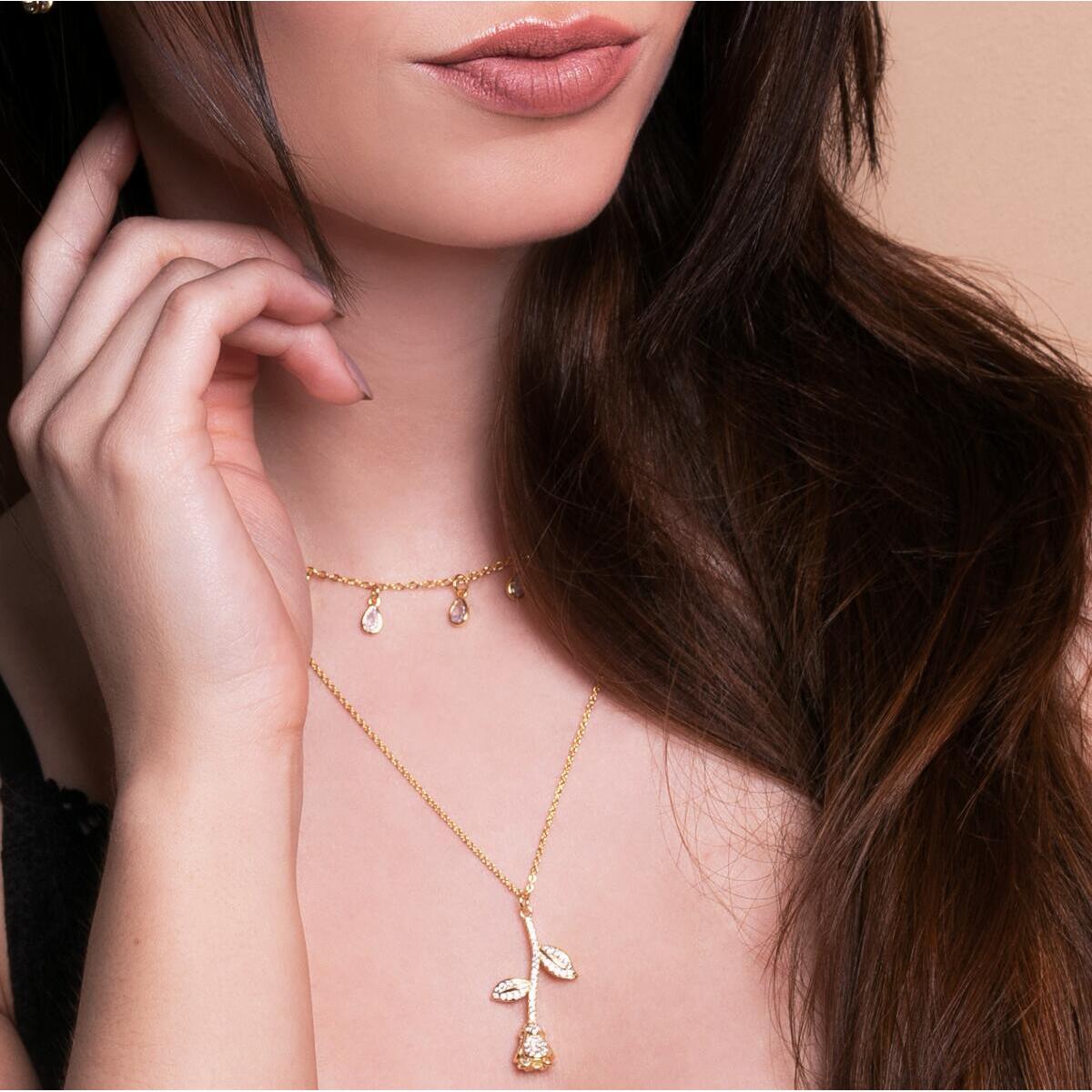 Die zarte und elegante DJADEE "Rose" Kette mit brilliantlichen Zirkonia und echtem Goldglanz steht für Liebe, Dankbarkeit, Romantik und Glück. Besonderes und bedeutungsvolles Geschenk für Ihre Liebste, passend zum Jubiläum, zum Valentinstag, zum Geburtstag und vielen anderen besonderen Feiertagsveranstaltungen. Bestandteil des Verschlusses ist eine Verlängerung, mit der die Länge der Halskette reguliert werden kann. Durch ihre Schlichtheit lässt sie sich perfekt mit anderen Ketten kombinieren.