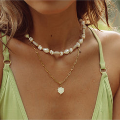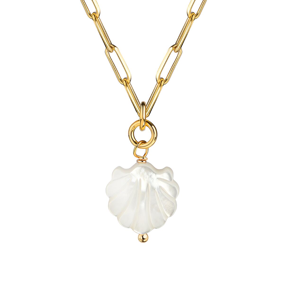 Shell Serenity Kette aus der Ocean Stories KollektionAUSGEZEICHNETE QUALITÄT: Keine Verfärbung, keine Hautreizung! Die Kette ist aus hochwertigem Messing, 24 Karat Gold vergoldet, mit einem edel-glänzenden Finish, sodass Du garantiert lange Zeit große Freude an diesem Schmuckstück hast. Qualität, die jeder an deinem Hals sofort erkennen wird. Die Kette wurde aufwendig mit 3 Goldschichten 24 Karat (999er) Gold vergoldet und garantiert daher eine luxuriöse Ausstrahlung. Dauerhafter Glanz, kein Abfärben durch die Vergoldung, rostfrei, nickelfrei, hochwertig verarbeitet, Farbe und Glanz wie echtes Gold.WIDERSTANDSFÄHIG: Durch die hochwertige Vergoldung, erhält unser Schmuck einen extra starken Schutz und behält seine Farbe selbst im Salzwasser oder unter der Dusche. Die Beschichtung ist besonders haltbar und kann lange Zeit halten. Zusätzlich werden alle Schmuckstücke mit einer Anlaufschutzschicht für langanhaltenden Glanz veredelt.