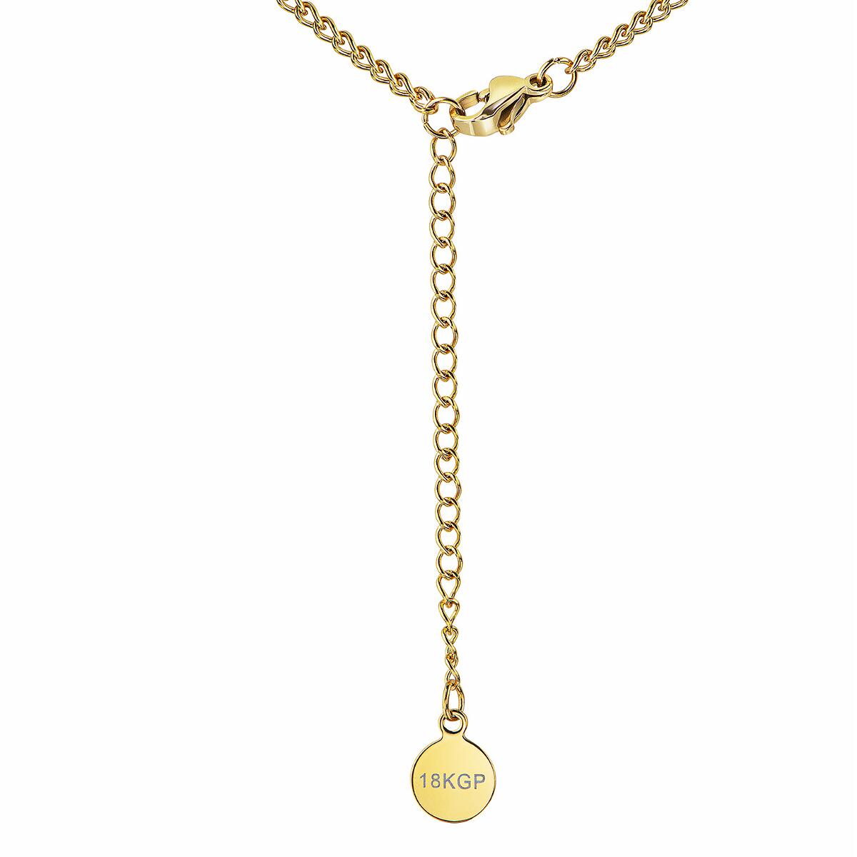Diese Kette begeistert durch die moderne Optik. Durch das schlichte Design dieser Kette lässt sich dieses Schmuckstück wunderbar mit anderen Schmuckstücken kombinieren und ist das perfekte Accessoire für jeden Anlass oder Look. Die individuelle Tragelänge lässt sich durch eine integrierte Verlängerungskette einstellen. Geschlossen wird die Halskette mit einem praktischen Karabinerverschluss.Die Kette wurde mit 18 Karat (750er) Gold vergoldet und garantiert daher eine luxuriöse Ausstrahlung, dauerhaften Glanz, kein Abfärben durch die Vergoldung, rostfrei, nickelfrei, hochwertig verarbeitet, Farbe und Glanz wie echtes Gold. Durch die hochwertige Vergoldung, erhält unser Schmuck einen extra starken Schutz und behält ihre Farbe selbst im Salzwasser oder unter der Dusche.