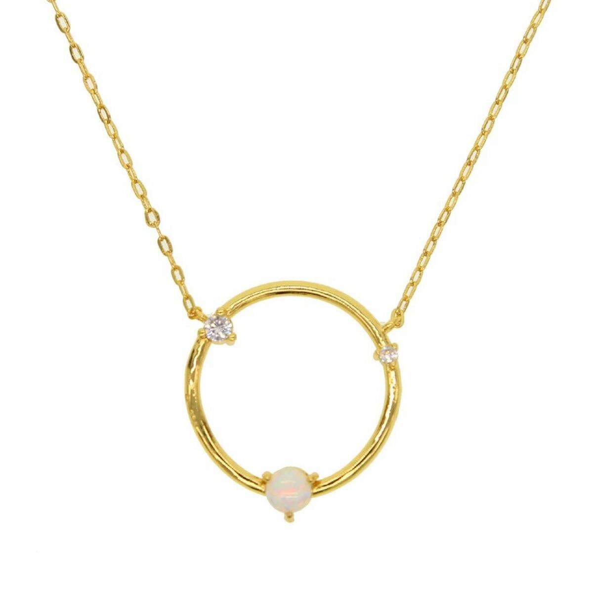 Diese elegante Halskette aus "Opal Brilliant Kollektion" ist ein vielfältiges Basic-Must-Have für jede Frau bei jeder Gelegenheit. Stillvoll und zärtlich verzaubert der runder Anhänger das Dekolleté jeder Trägerin. Der Opal Stein und funkelnde Zirkonia Steine machen dieser Anhänger besonders attraktiv. Ob im Abendkleid oder in einem T-Shirt wirst du in Begleitung dieser Kette umwerfend aussehen. Durch seine unaufdringliche Eleganz, passt dieses Schmuckstück zu jedem Outfit und Anlass. Die Kette verleiht deinem Look unwerfender Charm und ein zartes Aussehen. Passend zu dieser Kette gibt es ein Ring und Ohrringe als perfekte Ergänzung.