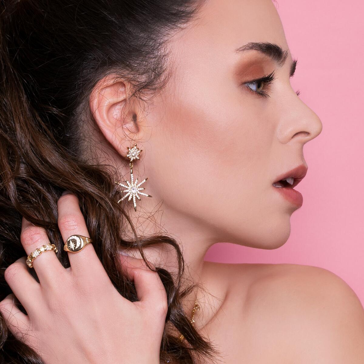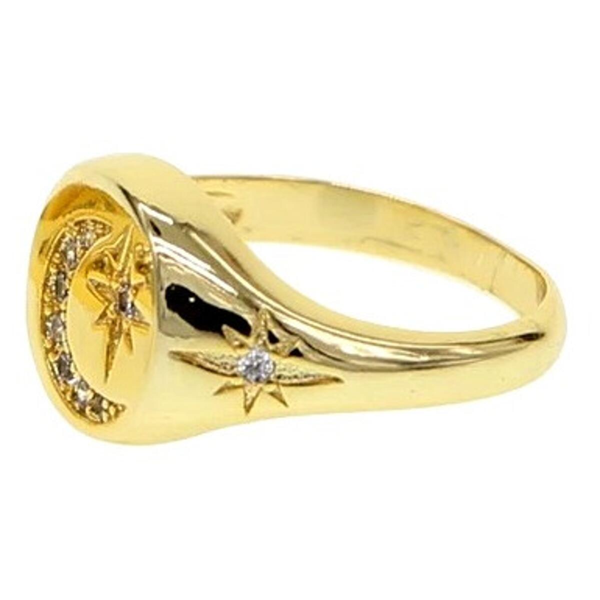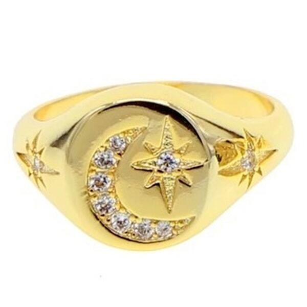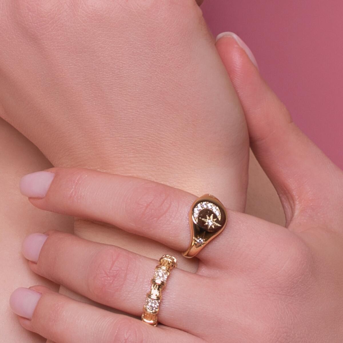 Der luxuriöse DJADEE "SHININGSTAR" Ring mit den einzigartigen funkelnden Mond und Stern bringt Ihre Finger zum Glänzen! Der Stern selber ist mit Cubic Zirkoniasteinen verziert. Passend zu diesem Ring gibt es eine Halskette, Ohrringe und Armband als perfekte Ergänzung.