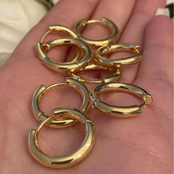Diese eleganten Creolenohrringe von DJADEE Simple Elegance sind perfekt für jeden Tag. Die vergoldeten Creolen aus 24 Karat Gold haben einen Durchmesser von 14 bis 20 Millimetern und sind dadurch besonders angenehm zu tragen. Durch die Vergoldung sind die Ohrringe besonders strapazierfähig und langlebig. Zudem sind sie wasserfest und hypoallergen, so dass sie selbst beim Sport oder im Urlaub am Meer getragen werden können, ohne zu verfärben oder Schaden zu nehmen. Die Creolenohrringe verleihen jedem Outfit mit ihrem schlichten Design einen edlen Touch und sind vielseitig kombinierbar.AUSGEZEICHNETE QUALITÄT: Keine Verfärbung, keine Hautreizung! Die Ohrringe sind aus hochwertigem Messing, 24 Karat Gold vergoldet, mit einem edel-glänzenden Finish, sodass Du garantiert lange Zeit große Freude an diesem Schmuckstück hast. Qualität, die jeder sofort erkennen wird. Diese Creolen wurden aufwendig vergoldet und garantieren daher eine luxuriöse Ausstrahlung. Dauerhafter Glanz, kein Abfärben, rostfrei, nickelfrei, hochwertig verarbeitet, Farbe und Glanz wie echtes Gold.WIDERSTANDSFÄHIG – Durch die hochwertige Vergoldung, erhält unser Schmuck einen extra starken Schutz und behält seine Farbe selbst im Salzwasser oder unter der Dusche. Die Beschichtung ist besonders haltbar und kann langlebig halten. Zusätzlich werden alle Schmuckstücke mit einer Anlaufschutzschicht für langanhaltenden Glanz veredelt.