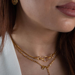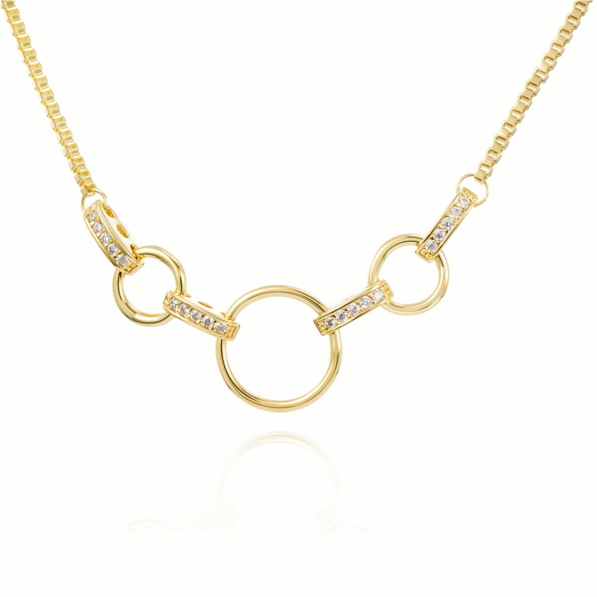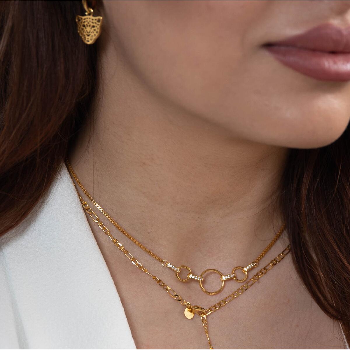 Dieses elegante und trendige Halskette ist ein vielfältiges Accessoire für jedes Schmuckkästchen. Stillvoll und glänzend verzaubern die Anhänger im Form eines Rings und Zirkonia Steine das Dekollté jeder Trägerin. Ob im Abendkleid oder in einem T-Shirt wirst du mit dieser Kette umwerfend aussehen. Durch ihre unaufdringliche Eleganz, passt dieses Schmuckstück zu jedem Outfit und Anlass. Diese Halskette verleiht deinem Look Charm, ein zartes Aussehen und viel Freude. Passend zu dieser Kette gibt es ein Armband als perfekte Ergänzung.