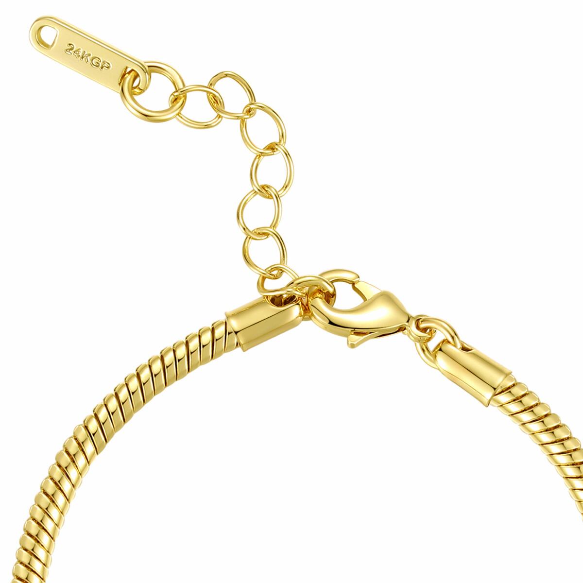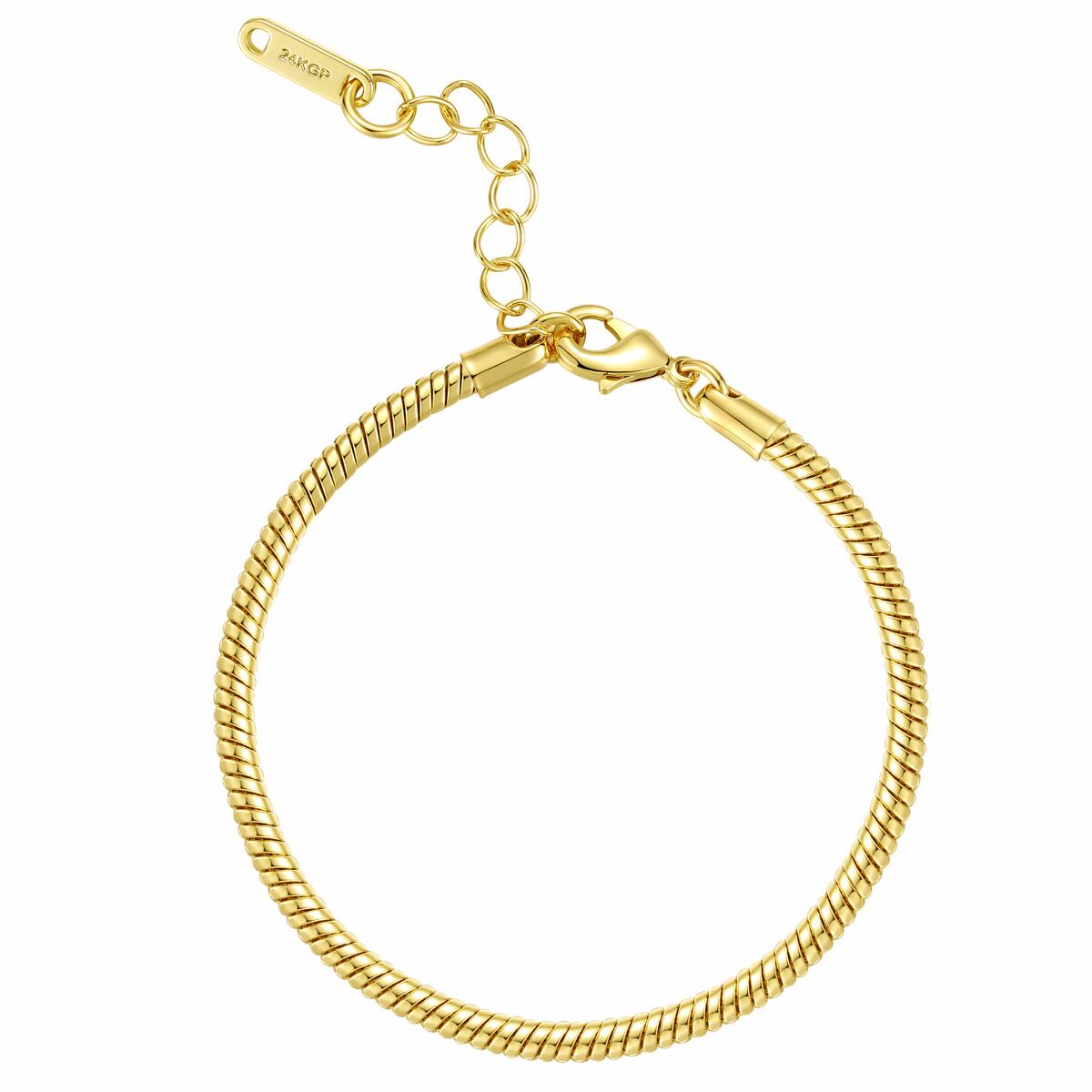 DJADEE Damen Armband "Snake"Klassisch und vielseitig kombinierbar. Einzeln schlicht und feminin, aber auch perfekt in Kombination mit anderen Armbänder - so präsentiert sich dieses glänzende Schlangenarmband. Die Breite beträgt 3 mm, als Verschluss dient ein Karabiner. Passend zu diesem Armband gibt es eine Kette als perfekte Ergänzung.Das Armband ist 24 Karat (999er Gold) vergoldet und garantiert daher eine luxuriöse Ausstrahlung.