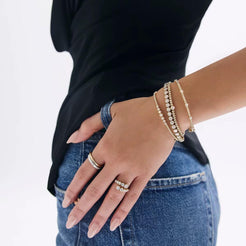 ntdecken Sie das elegante DJADEE Tennis-Armband - ein zeitloses Schmuckstück, das Luxus und Stil vereint. Das hochwertige Messingarmband ist mit 24 Karat vergoldet und besticht durch seine funkelnden Cubic Zirkonia Steine im brillanten Schliff. Dank der hochwertigen Verarbeitung ist das Armband wasserfest und hypoallergen, was es zum idealen Begleiter für den täglichen Gebrauch macht. Die hochglanzpolierte Oberfläche ist anlaufgeschützt und behält ihren strahlenden Glanz. Das vielseitige Design macht es zum perfekten Accessoire für jeden Anlass, sei es für den Alltag oder besondere Momente. Das Armband wird in einer Premium-Geschenkverpackung geliefert - ideal als besonderes Geschenk für die Dame Ihres Herzens, zum Geburtstag oder zu Weihnachten. Mit diesem DJADEE Armband setzen Sie ein stilvolles Statement, das durch seine Qualität und zeitlose Eleganz überzeugt.